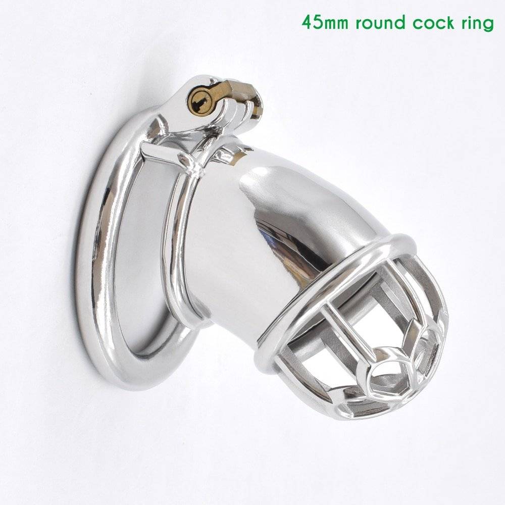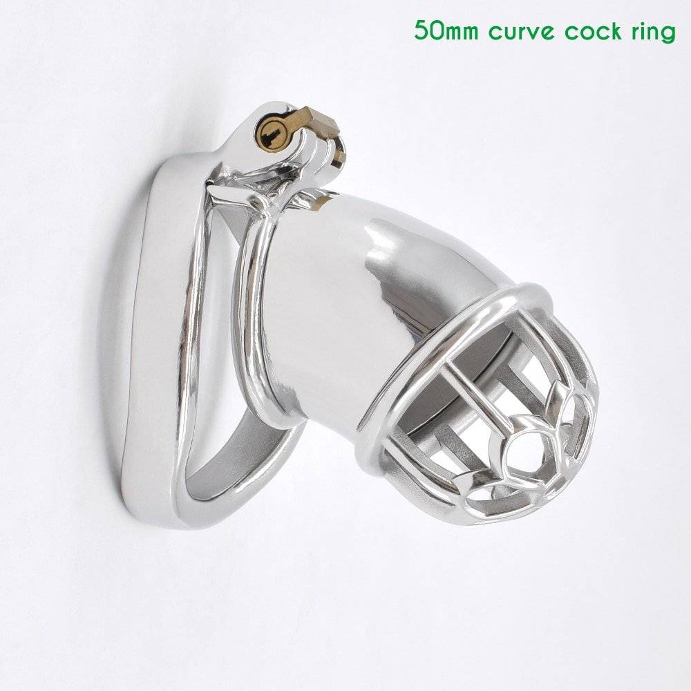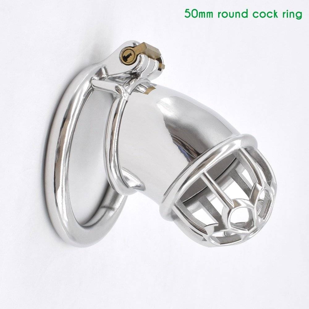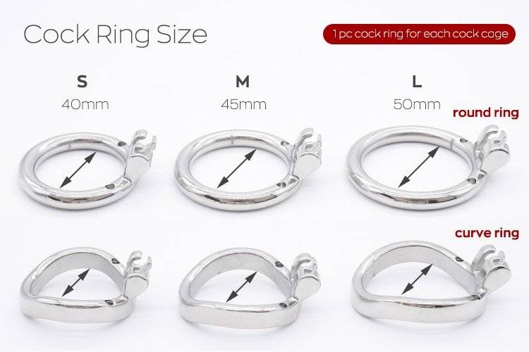 O cinto de castidade vem com 2 possíveis modelos de anéis, um redondo e o outro curvado. Opções interessantes para quem quer produtos mais largos ou mais justos.