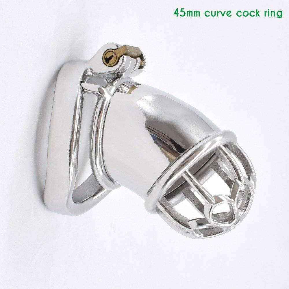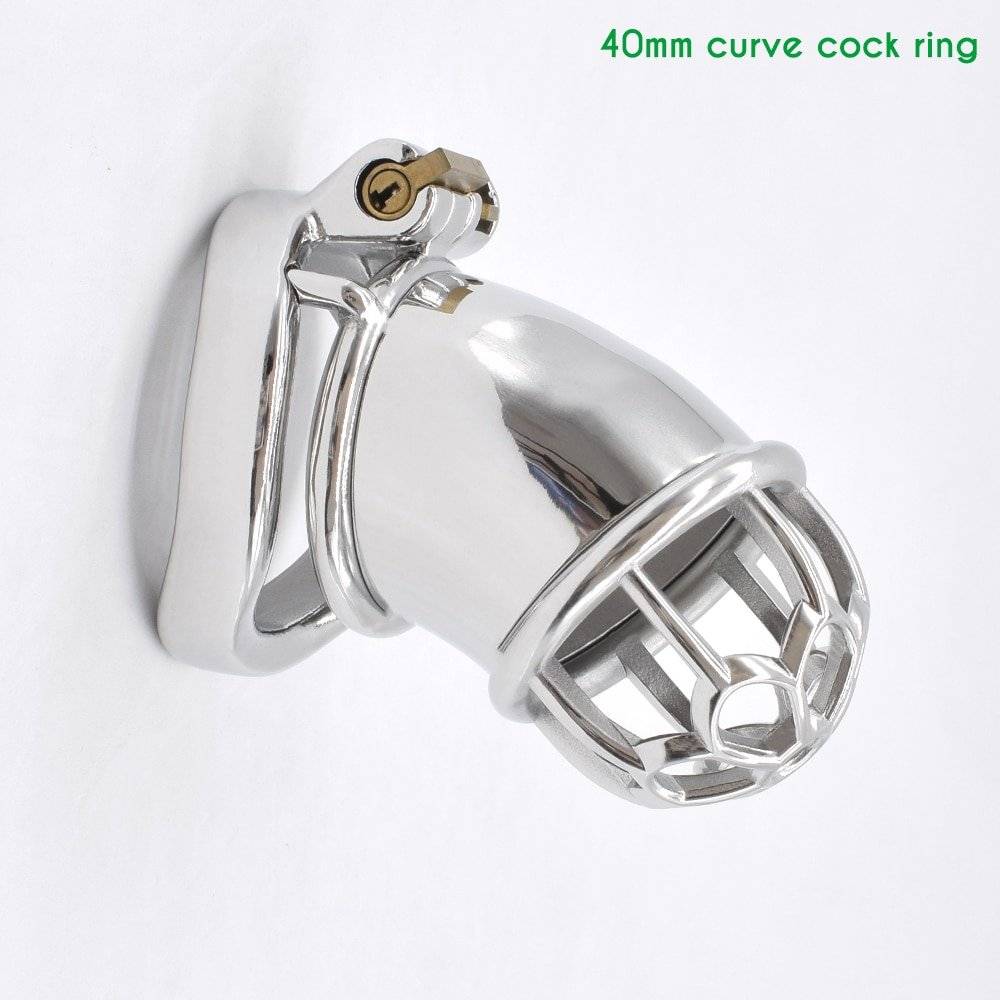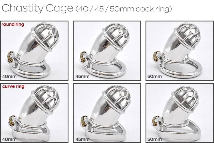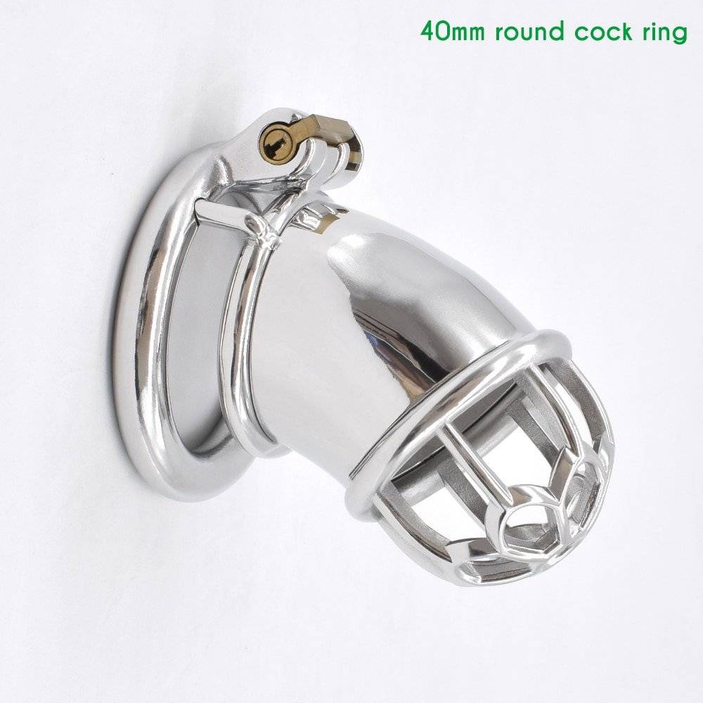 O cinto de castidade vem com 2 possíveis modelos de anéis, um redondo e o outro curvado. Opções interessantes para quem quer produtos mais largos ou mais justos.
