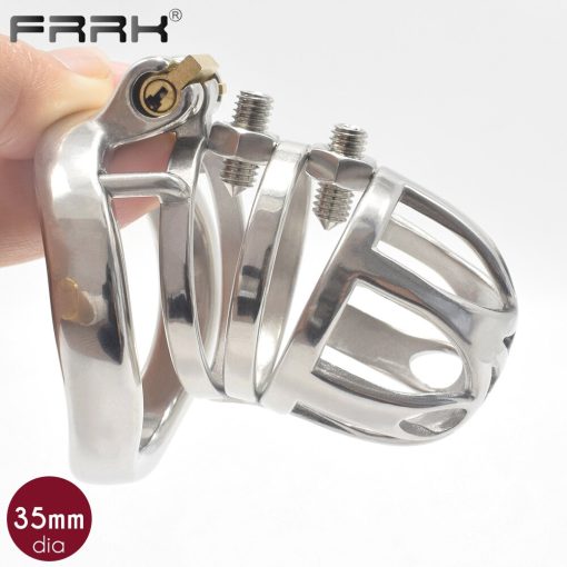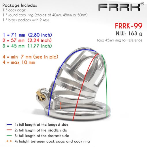 Gaiola de castidade média e de tamanho único, com opção de 3 anéis de base de tamanhos diferentes. É um modelo de cinto pesado, duro e capaz de suprimir qualquer vontade impura que tente fugir da castidade e da privação. É um cinto com tranca única, feita para trancamento por cilindro de chave feito em bronze e liga de latão.