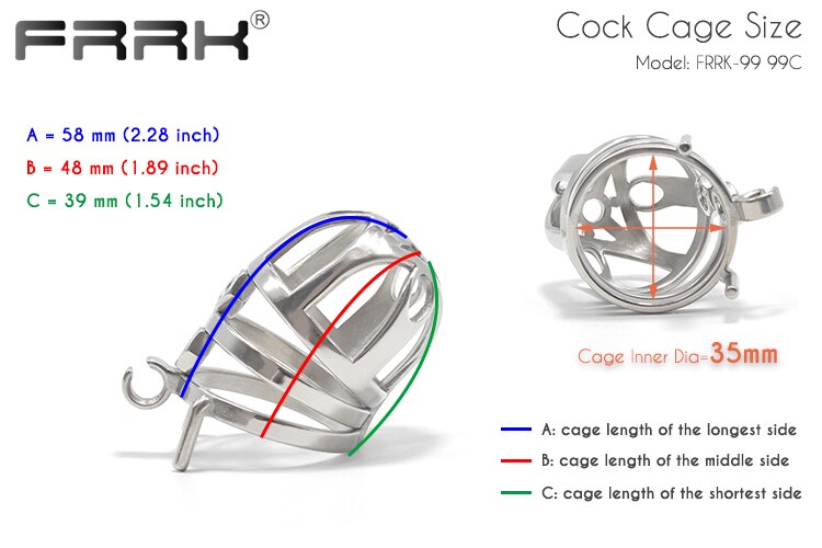 A gaiola possui tamanho externo e curvado de 5,9 cm da base até a ponta de fora da gaiola. É um produto que chama pouca atenção, pois a sua curvatura tem uma leve descaída natural. Pode ser usado nas atividades comuns do dia-a-dia, mas vai chamar a atenção se não for usado com roupas largas. O tamanho interno da gaiola é de aproximadamente 3,5 cm de altura e diâmetro.