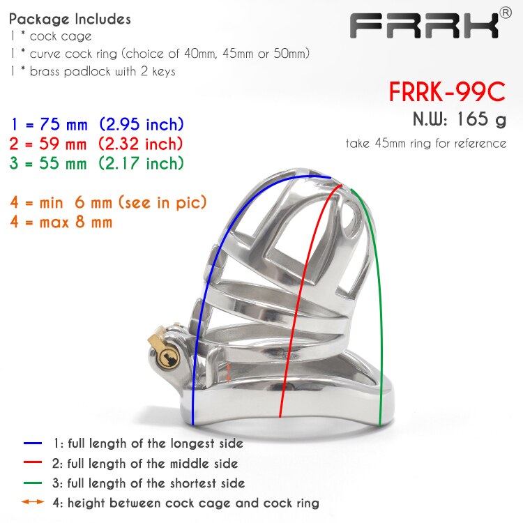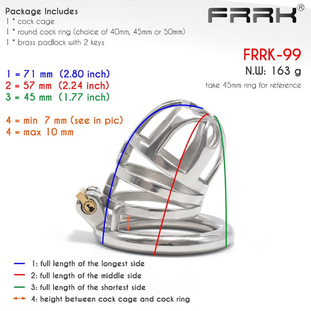 Cinto de Castidade FRRK Gaiola média com anel curvado anatômico ou arredondado para a base dos testículos e pênis.