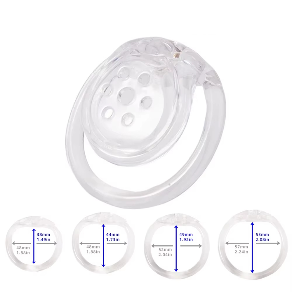 Desenvolvida para unir controle, conforto e estética discreta, esta gaiola de castidade é produzida em material transparente e leve, permitindo um visual limpo e moderno sem perder a firmeza necessária.