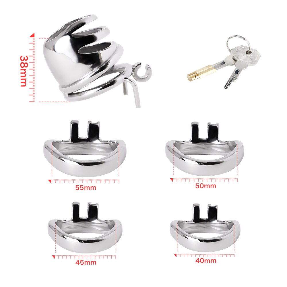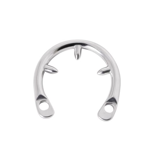 Cinto de castidade gaiola de aço e anéis de base polidos arredondados. 8 opções de anéis com ou sem espinhos.