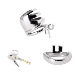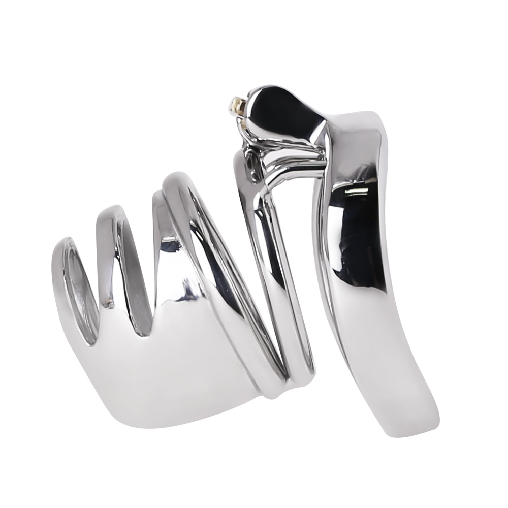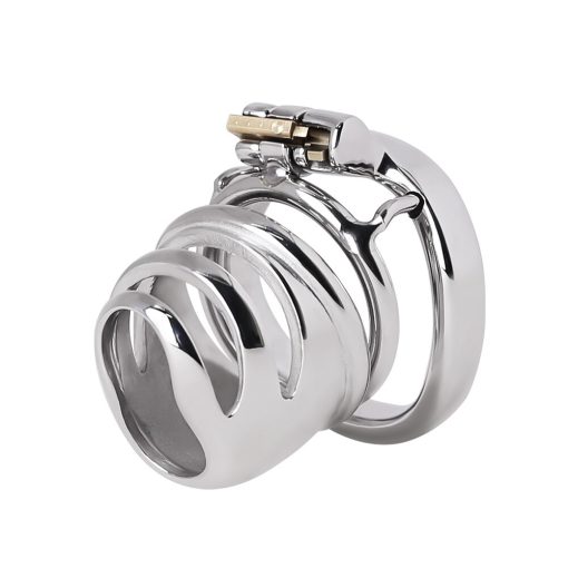 A gaiola tem formato com designe bonito, como um tubo com corte futurista e charmoso. É um modelo de cinto pesado, duro e capaz de suprimir qualquer vontade impura que tente fugir da castidade e da privação. Se você ficar excitado, alguns bons espinhos estarão lá para te lembrar do propósito. Trancado por cilindro de bronze e liga de latão.