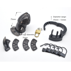 Gaiola de castidade de tamanho único, mas adaptável, com um anel de base incluso. É um modelo de cinto que oferece leveza, e facilidade de uso pelo seu material de fabricação. Possui aberturas para passagem de líquidos, caso haja a necessidade de urinar durante o uso. Pode ser molhado.
