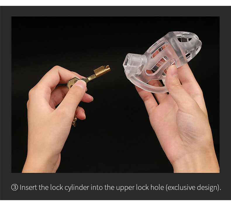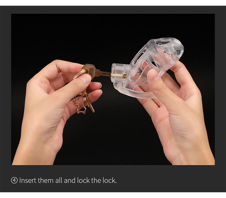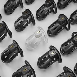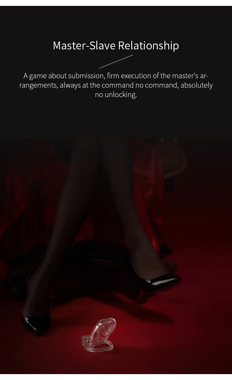 Composto em resinas naturais, sendo um em cor preta e outro transparente. Acompanha chave e cilindro de bloqueio em liga de latão. Ainda neste conjunto, há a opção para compra de um porta chaves eletrônico, controlável por app de celular. Você pode programar quando a chave será liberada através do aplicativo. Nada melhor que usar da tecnologia para garantir o domínio sobre seu parceiro dominado. Castidade é coisa do futuro também.