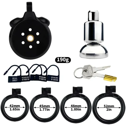 Este dispositivo combina um anel peniano resistente com uma gaiola de castidade, ideal para sissies e submissos que desejam explorar limites de dominação e castidade.