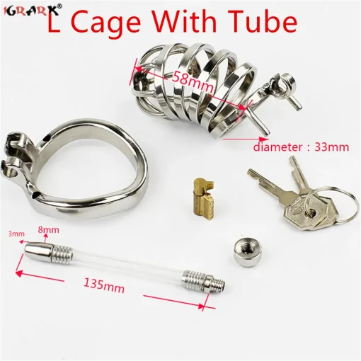 - Conjunto Completo: Inclui uma gaiola, um anel, um cadeado com duas chaves e o cateter removível.