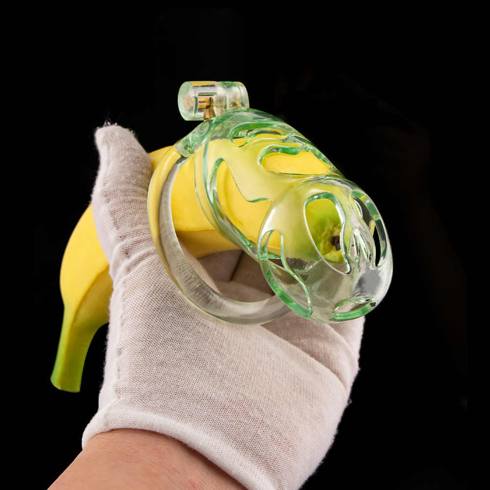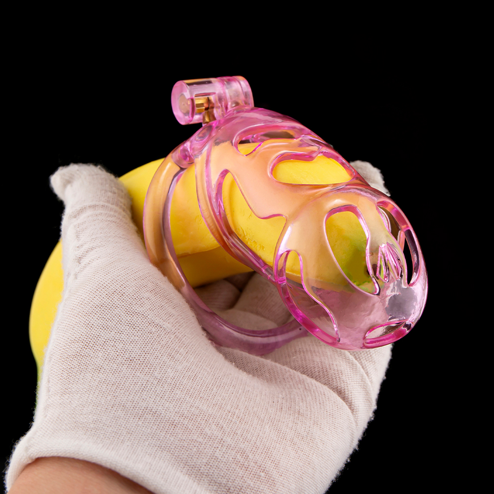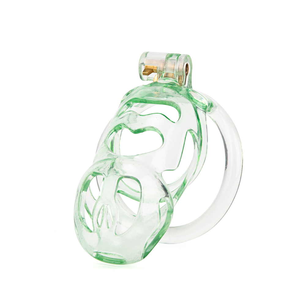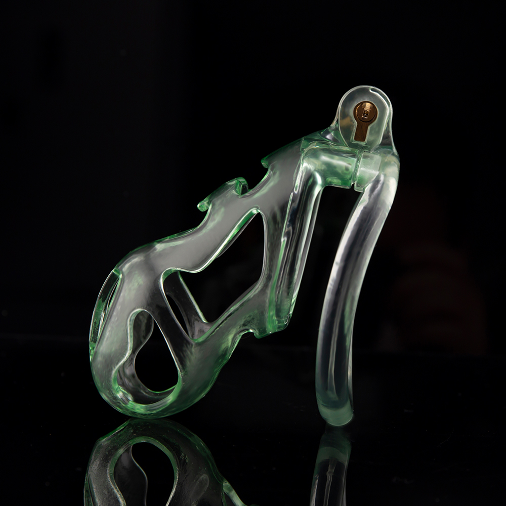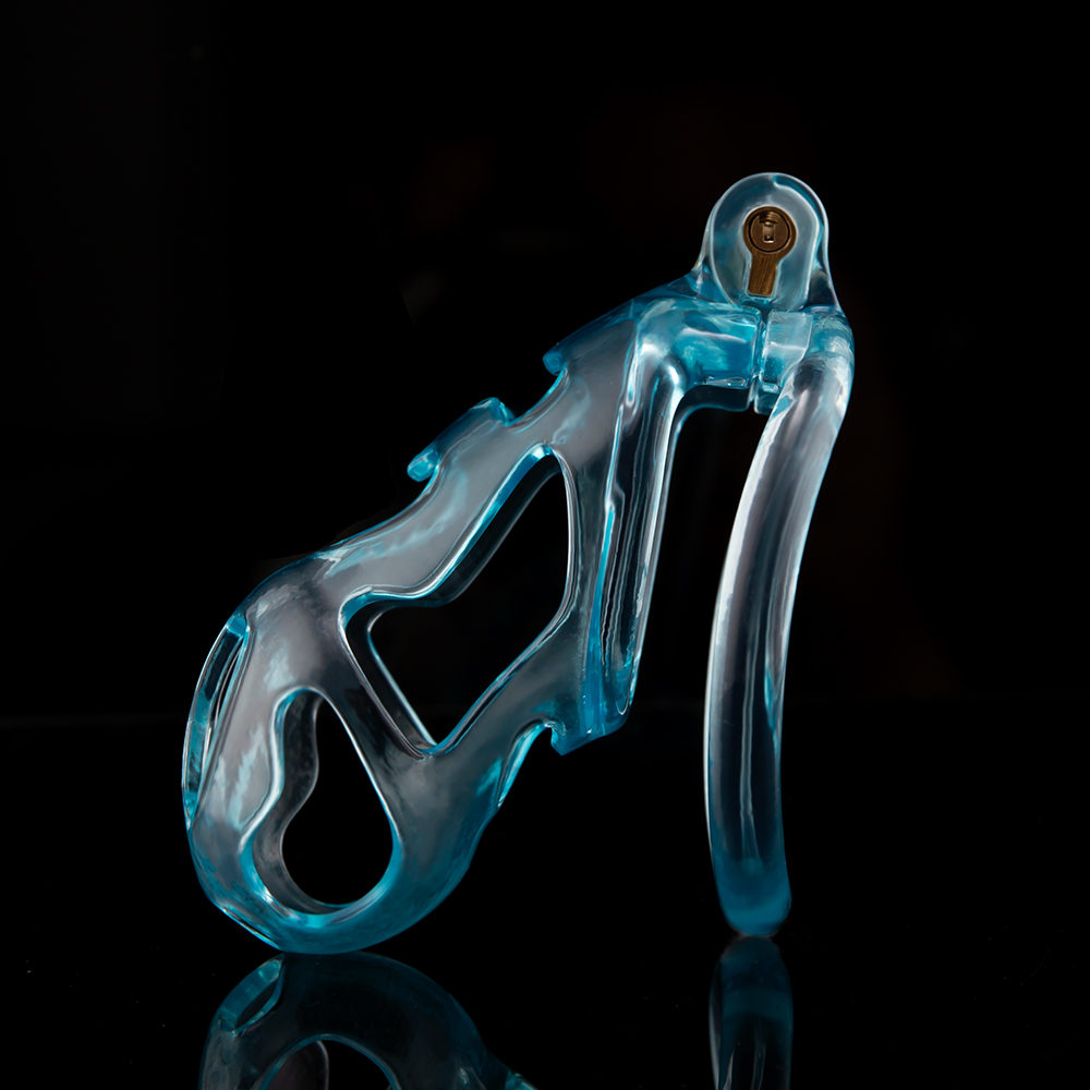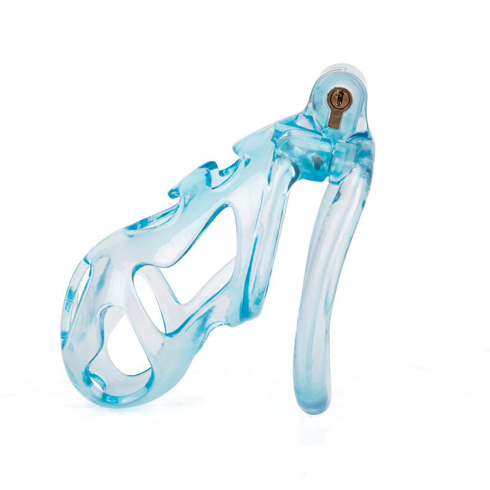 Gaiolas de castidade anatômicas com 5 tamanhos. São 6 anel de base com uma grande variedade de diâmetros. São anel de base retos. Modelos de cinto do compacto até os grande, pesando aproximadamente 80g de plástico ABS nas cores azuis, roxas, verdes ou rosas.