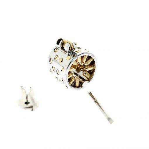 Gaiola peniana – Cinto de castidade masculino Kali’s Teeth- feita em aço, com dentes parafusáveis. Cada parafuso tem a medida certa para causar dor e prazer para o devasso portador.