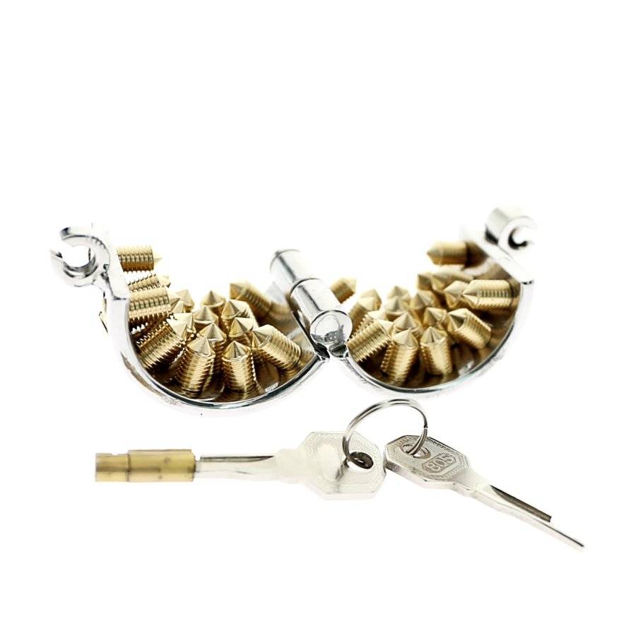 Com um total de 40 dentes, serve para prender o pênis e aplicar a DISCIPLINA a quem merece. Vem com chave para trancafia-lo e garantir que a liberdade venha somente com as mãos certas.