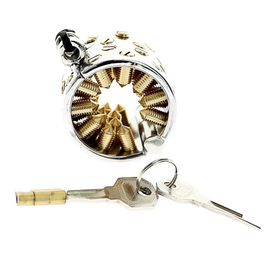 ★ dispositivo de castidade eficaz. Coloque-o ao redor do pênis, então quando ele conseguir uma ereção, os pontos irão cavar em sua carne mais sensível.
