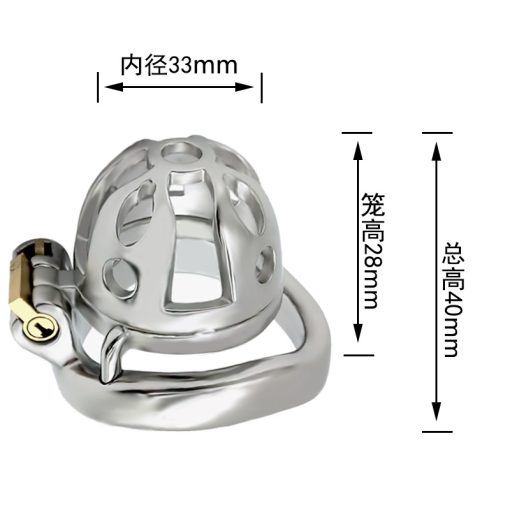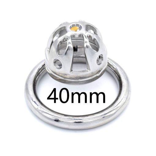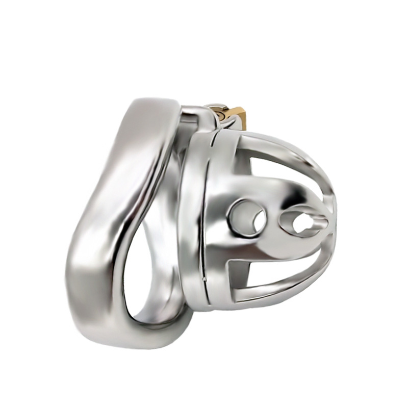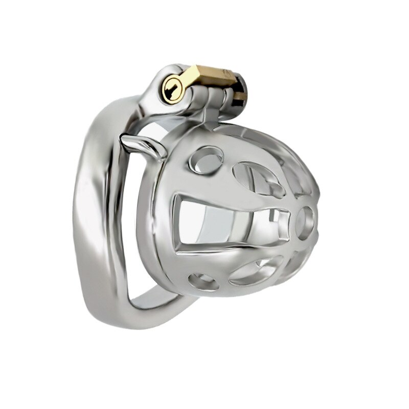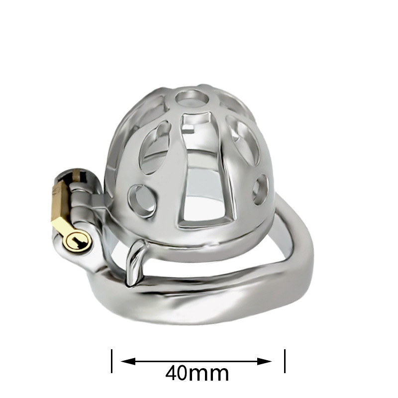 Gaiola de castidade pequena e de tamanho único, com opção de 3 anéis de base de tamanhos diferentes. É um modelo de cinto pesado, duro e capaz de suprimir qualquer vontade impura que tente fugir da castidade e da privação. É um cinto com tranca única, feita para trancamento por cilindro de chave feito em bronze e liga de latão.