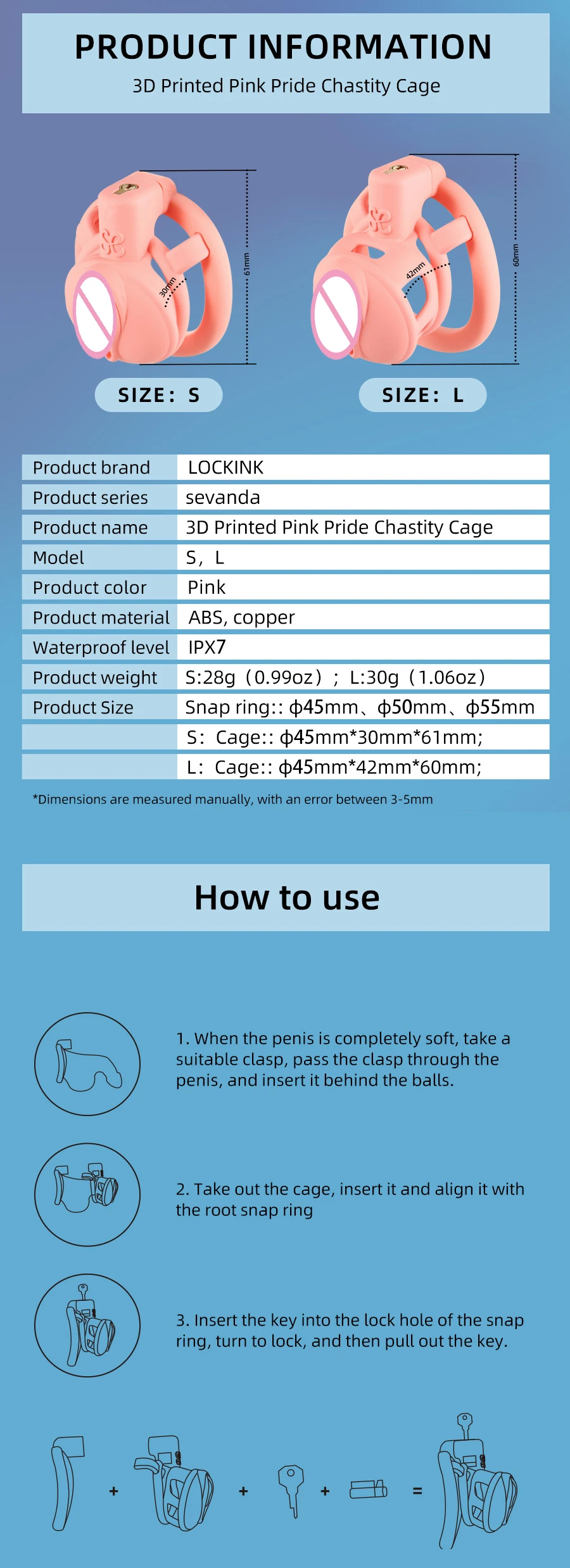 Sevanda 3D Printed Pink Pride Chastity Cage