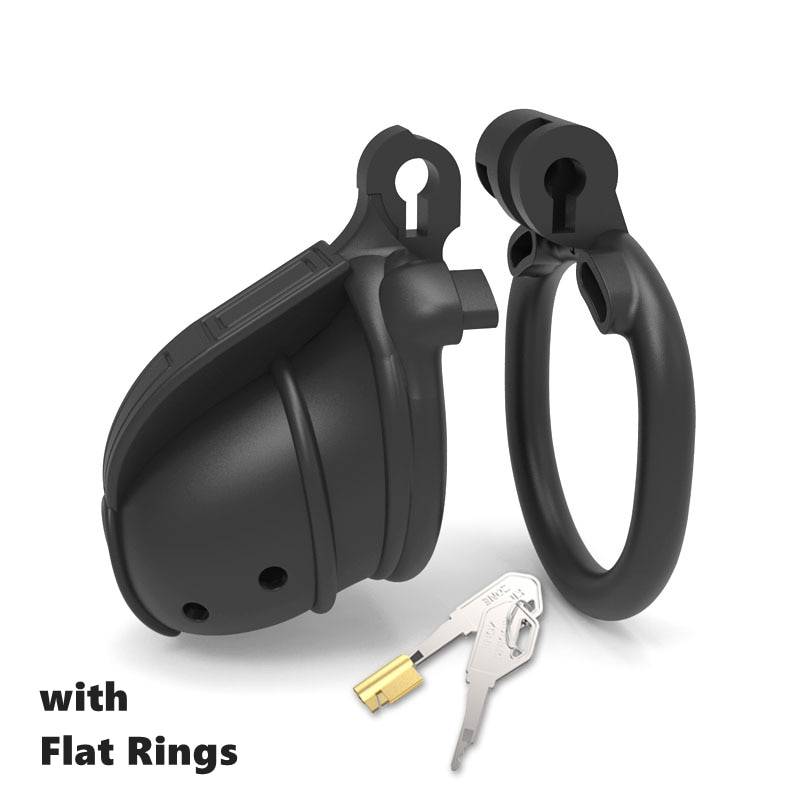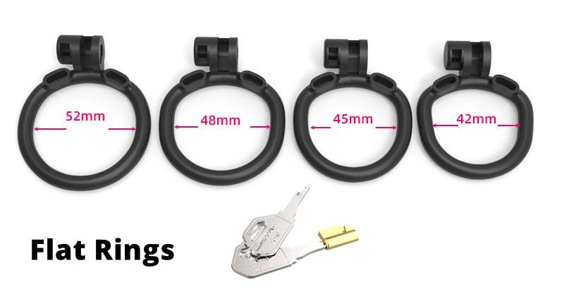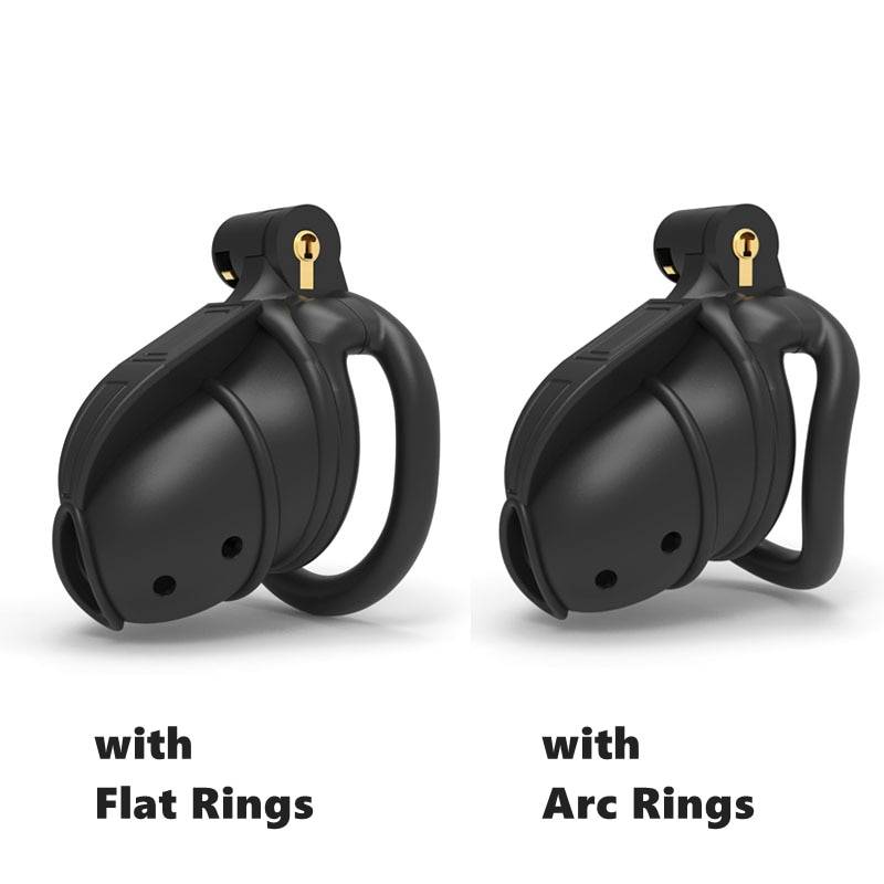 Cintos de castidade pequenos com anéis curvos ou retos. Resina leve com até duas cores.