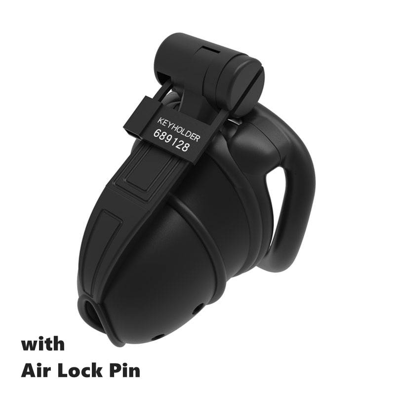 Este modelo possui um encaixe preciso para os cilindros de trancamento – cadeado stealth magic locker. As opções de trancas discretas podem ser interessantes para uso em público. Esta abertura para a uretra não proporciona suporte para fixação de tubos de cateter.