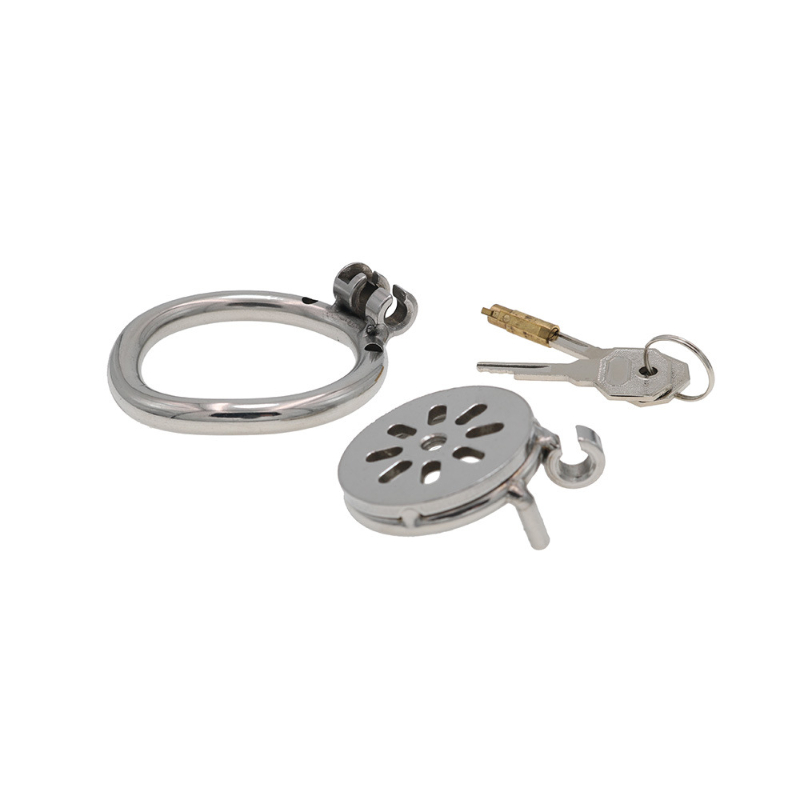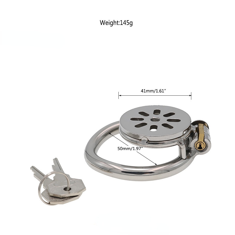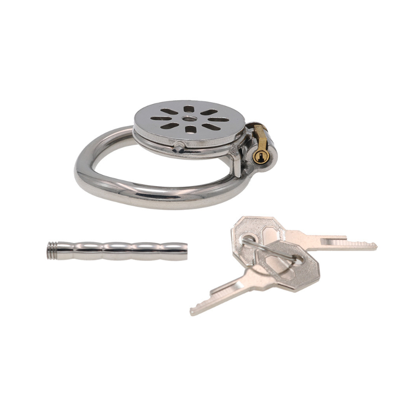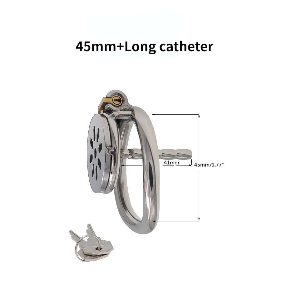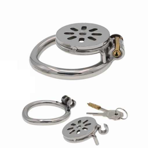 Gaiolas de castidade de tamanhos únicos micros, com 3 anéis de base opcionais. Também são 3 modalidades de cateter. Opções sem tubos, opções com tubo de cateter pequeno ou tubo grande.