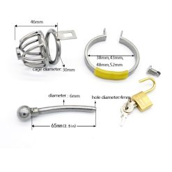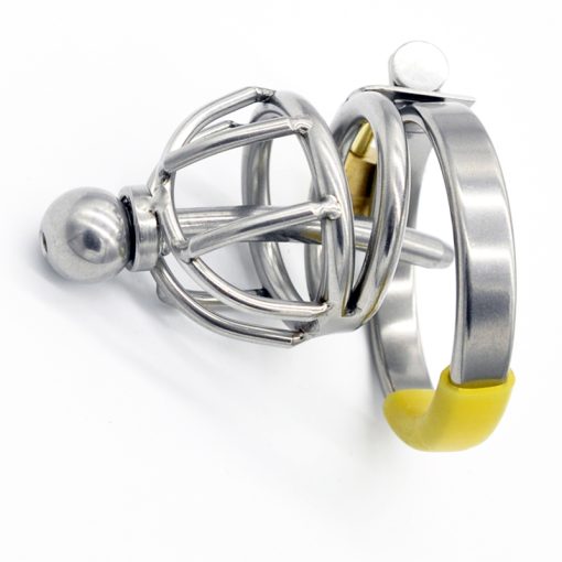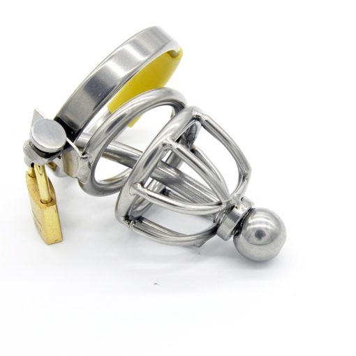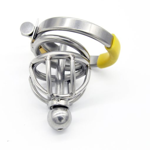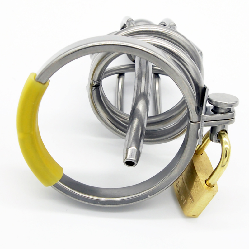Cinto de Castidade Anel Dobradiça com Cadeado Simples e Sonda / Cateter Uretral Removível em Aço Inoxidável