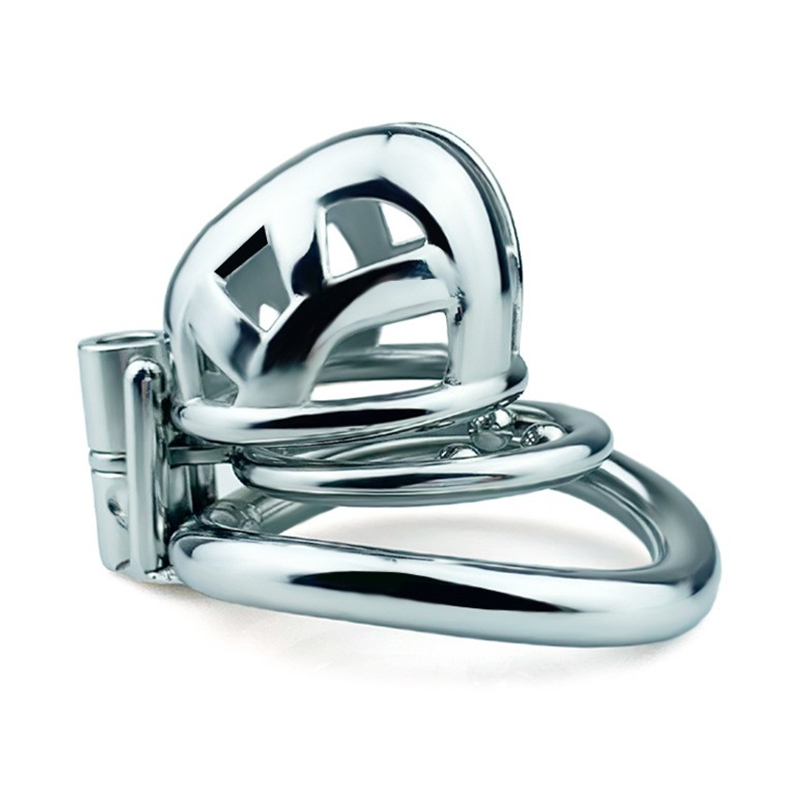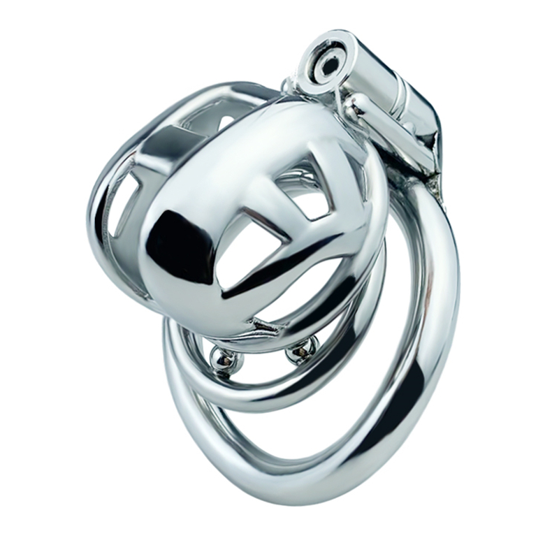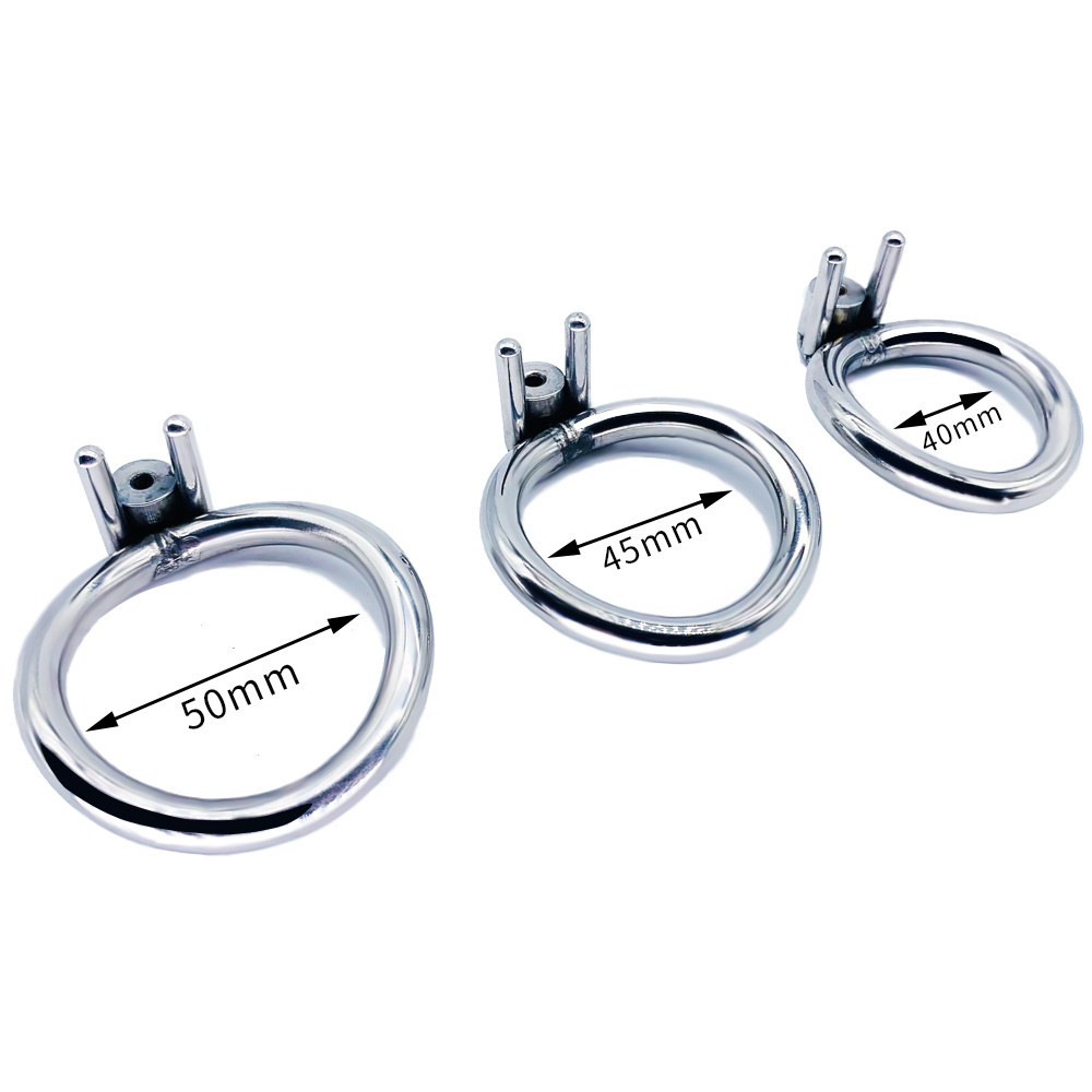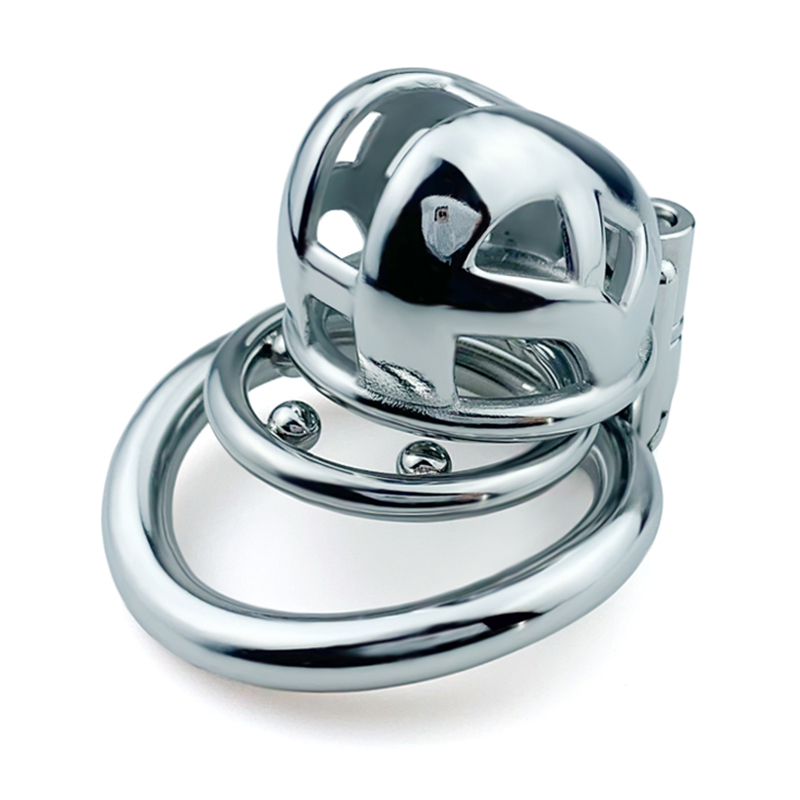 Gaiola de castidade de tamanho único pequena, com opção de 3 anéis de base de tamanhos diferentes.