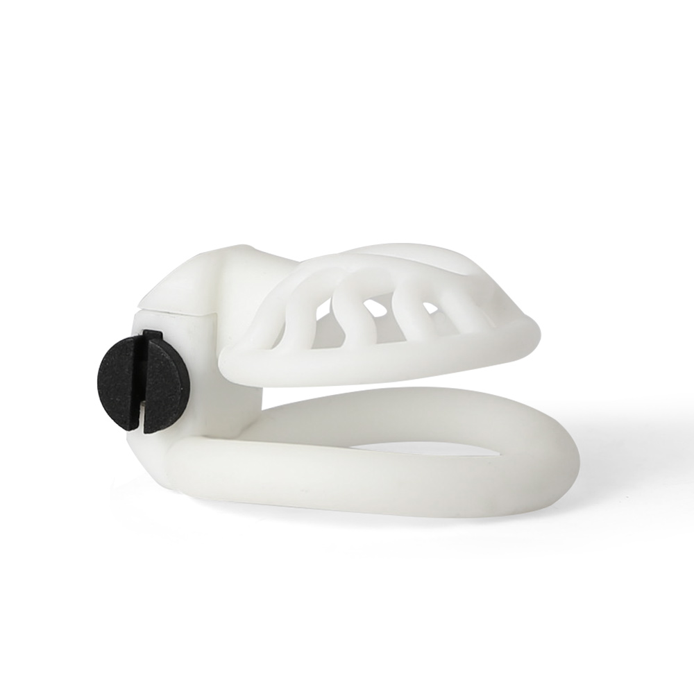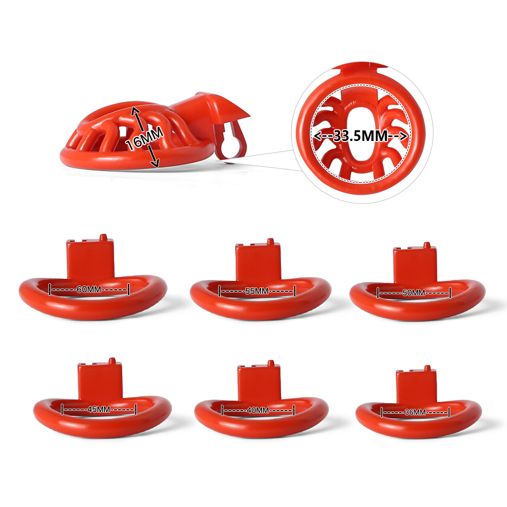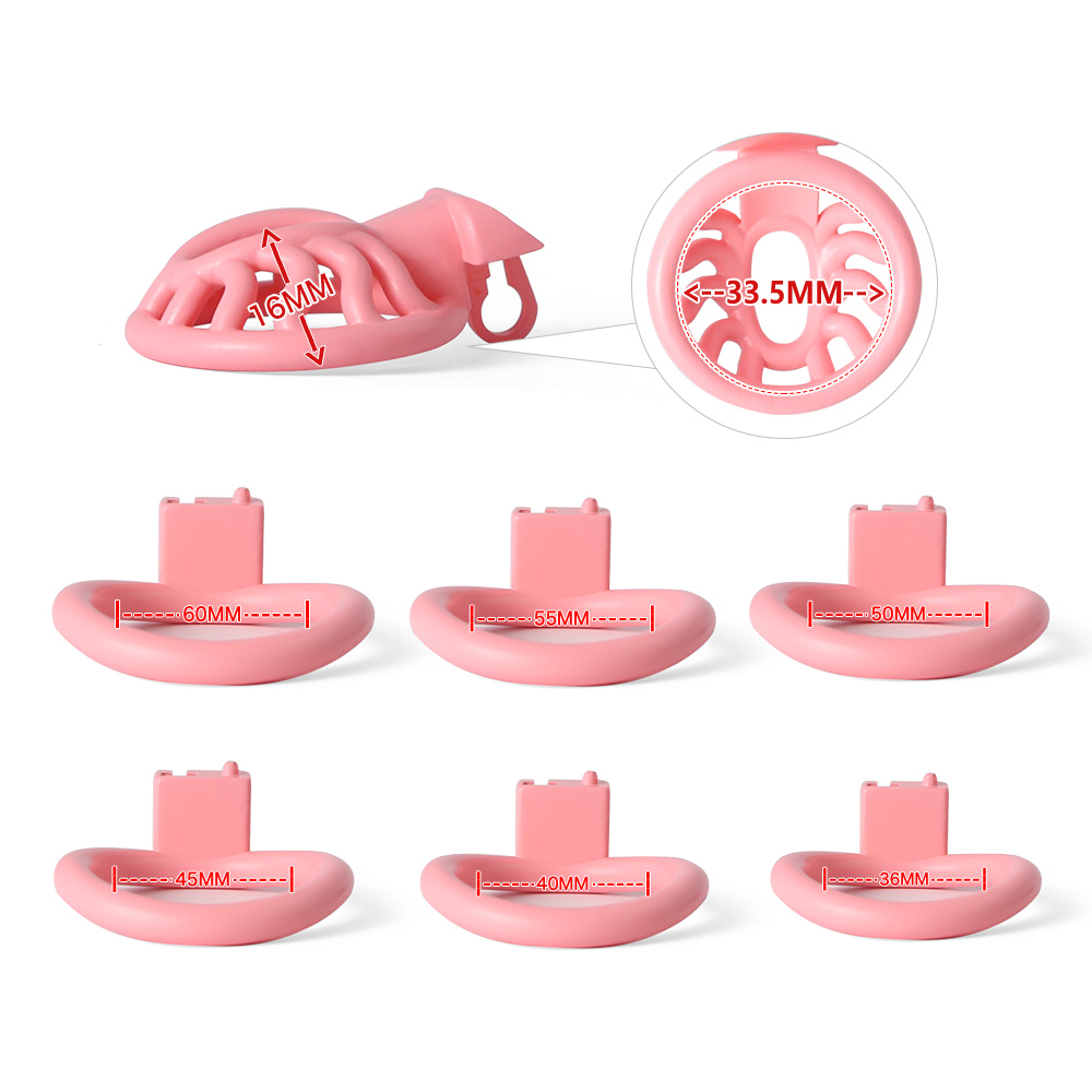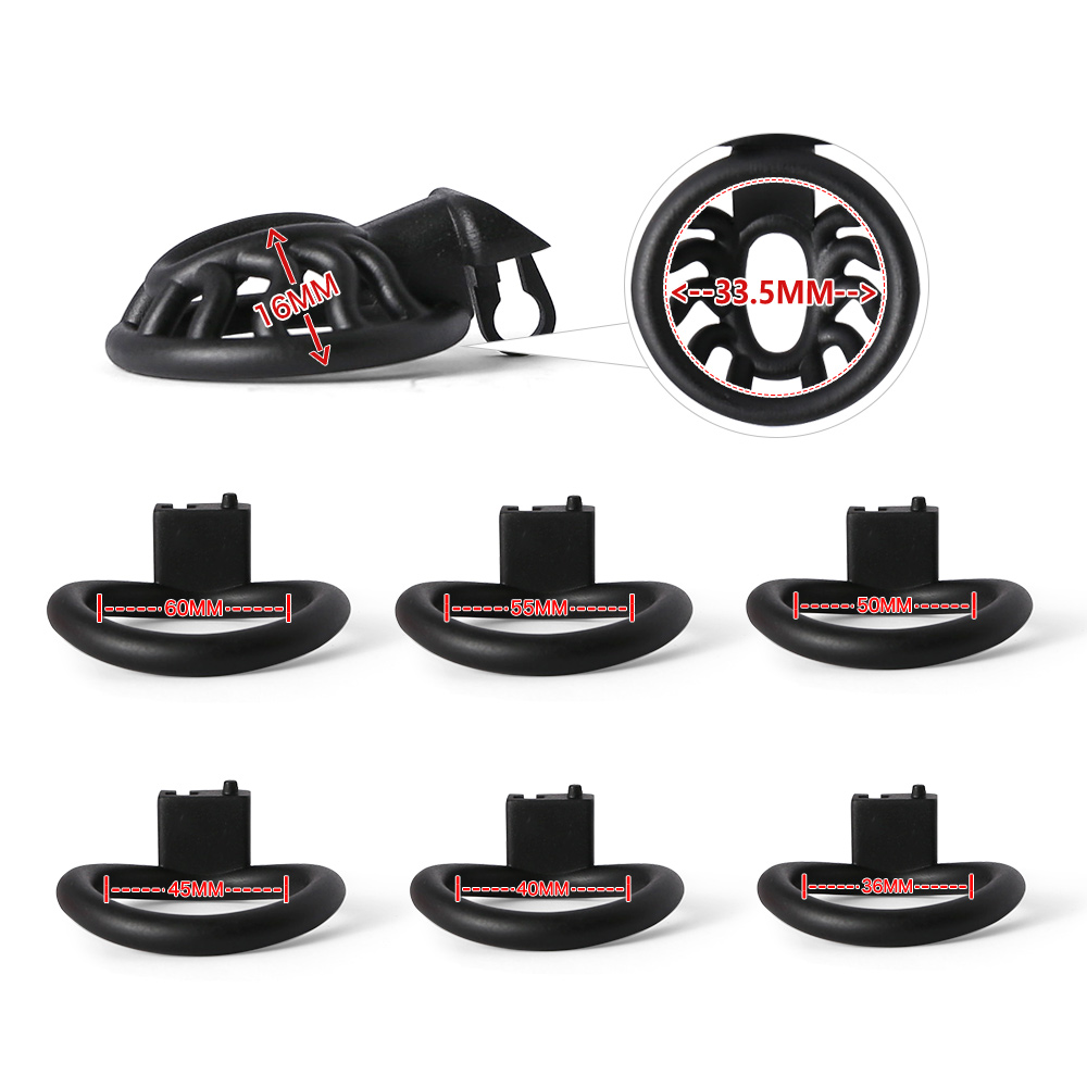 Gaiola de castidade de tamanho único micro, com 4 anéis de base inclusos. É um modelo de cinto com gaiola de ABS com tubos em formato de pequenas patas e pedipalpos de aranhas. Capaz de cobrir muito bem e prevenir quase qualquer contato com o pênis. São anéis de base levemente curvados em relação a base do pênis e testículos. 80g de plástico ABS nas cores pretas, vermelhas, brancas ou rosas.
