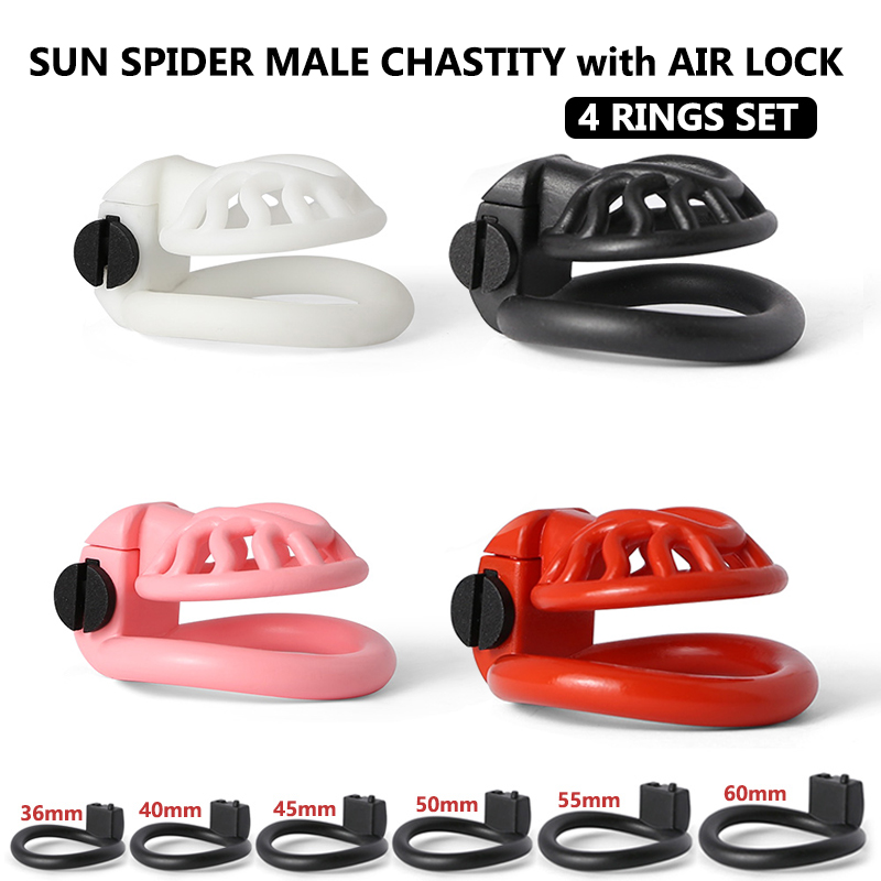 Cintos de Castidade air lock Spider. 3 cores, com anéis e tranca descartável inclusos.