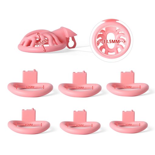 A gaiola possui tamanho aproximado externo e curvado de 1,6 cm da base da gaiola até a extremidade externa, aonde fica a glande. São 3,35 cm de diâmetro interno.