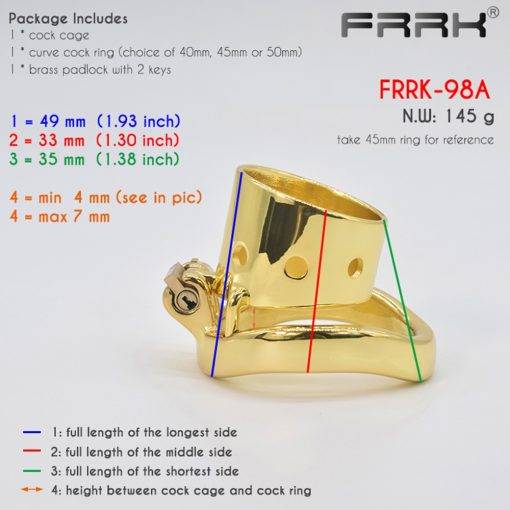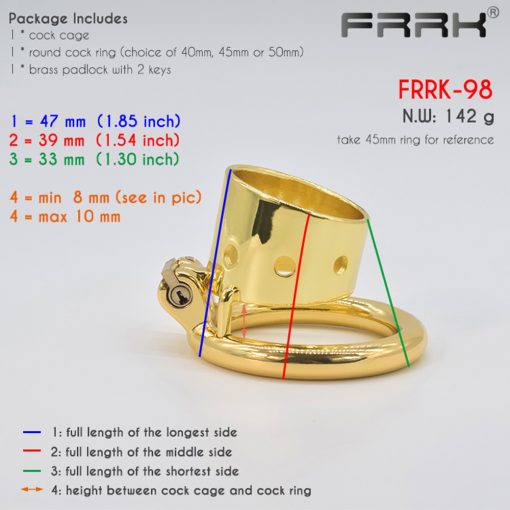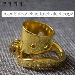 Não é bem uma gaiola de castidade. Possui passagem livre para o pênis. Serve muito bem para outros propósitos invés de garantir a castidade ou impedir o prazer. Você pode usar este modelo para treinar, para fetiches que simulam a castidade ou simplesmente por motivos estéticos. Qual pênis não ficaria mais bonito com detalhes dourados?