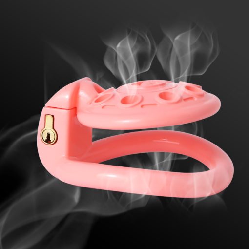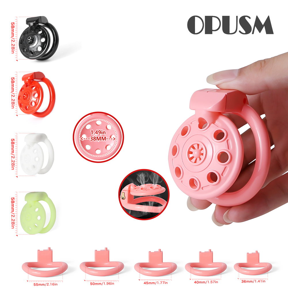 Gaiola de castidade de tamanho único micro, com 5 anéis de base opcionais. É um modelo de cinto com gaiola de ABS em formato de calota ou de disco voador. Capaz de cobrir muito bem e prevenir quase qualquer contato com o pênis. São anéis de base levemente curvados em relação a base do pênis e testículos. 80g de plástico ABS nas cores pretas, vermelhas, brancas, verdes ou rosas.