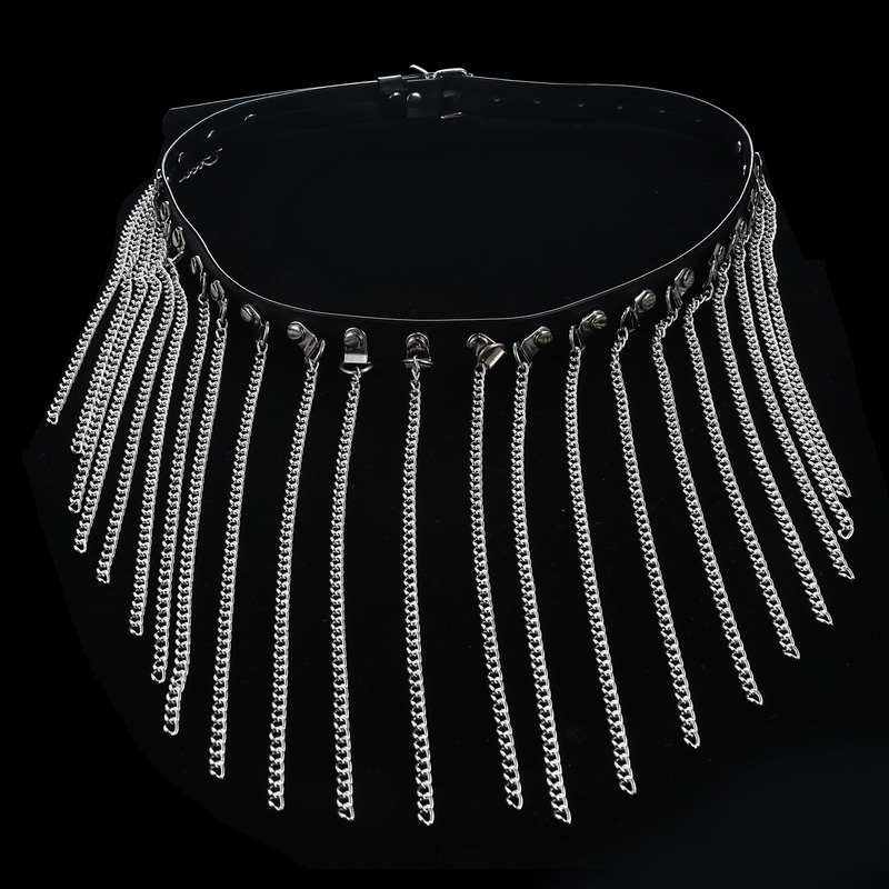 Cintas de couro plutônio e correntes para acessórios em saias, sem coberturas.