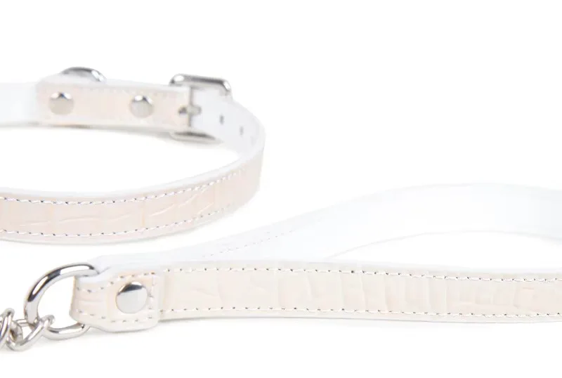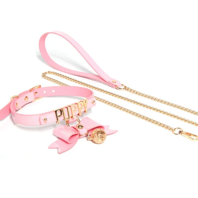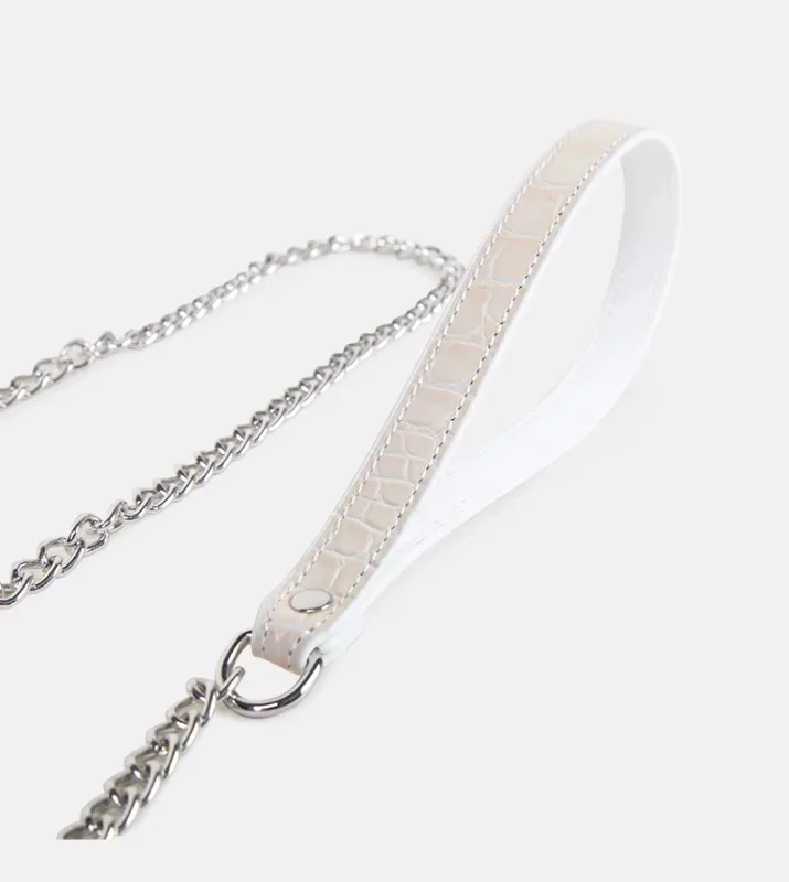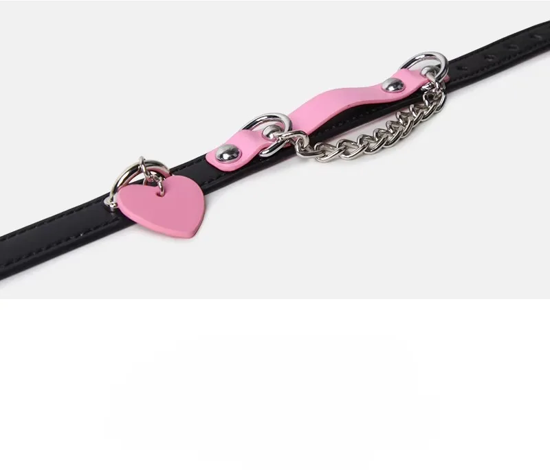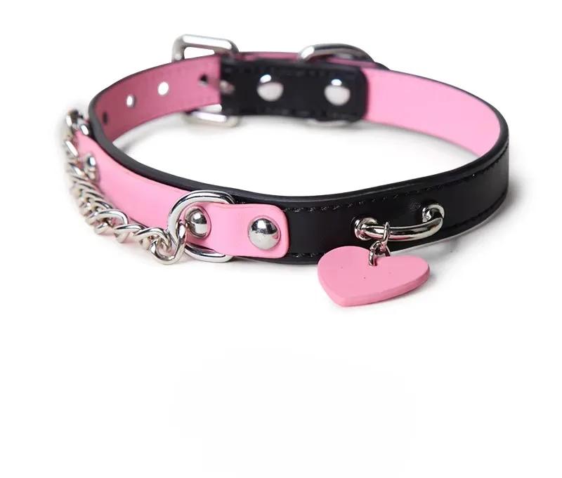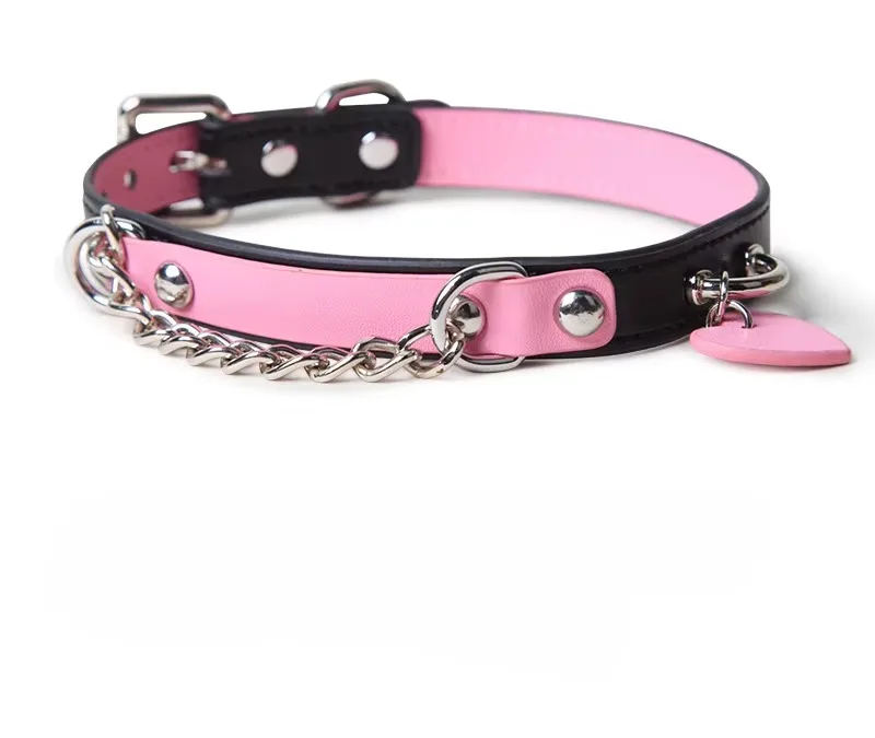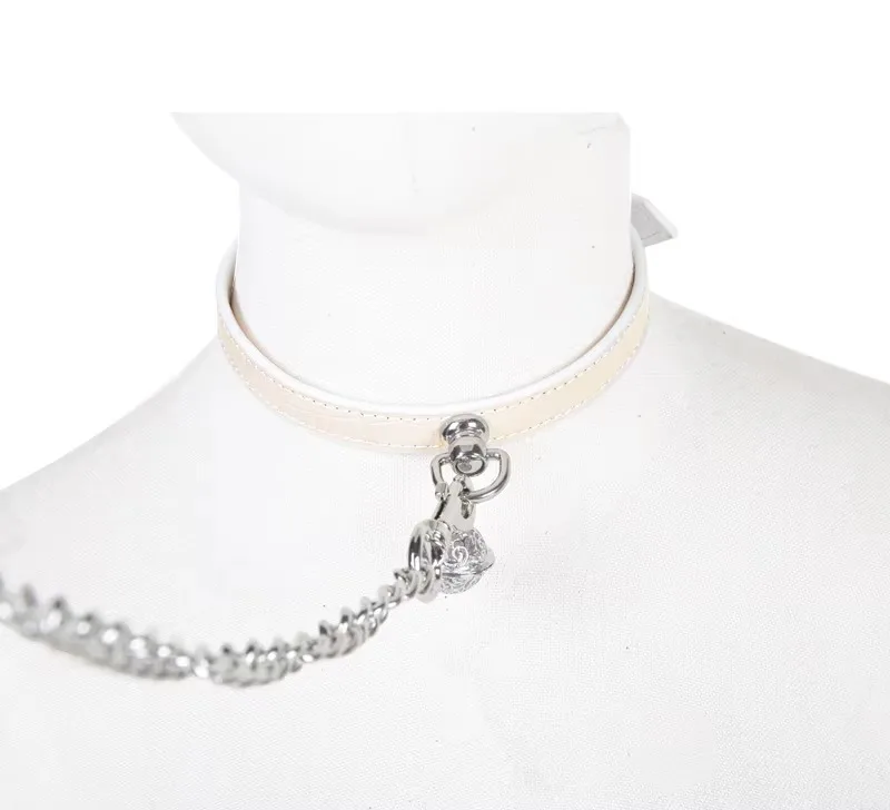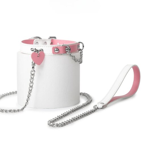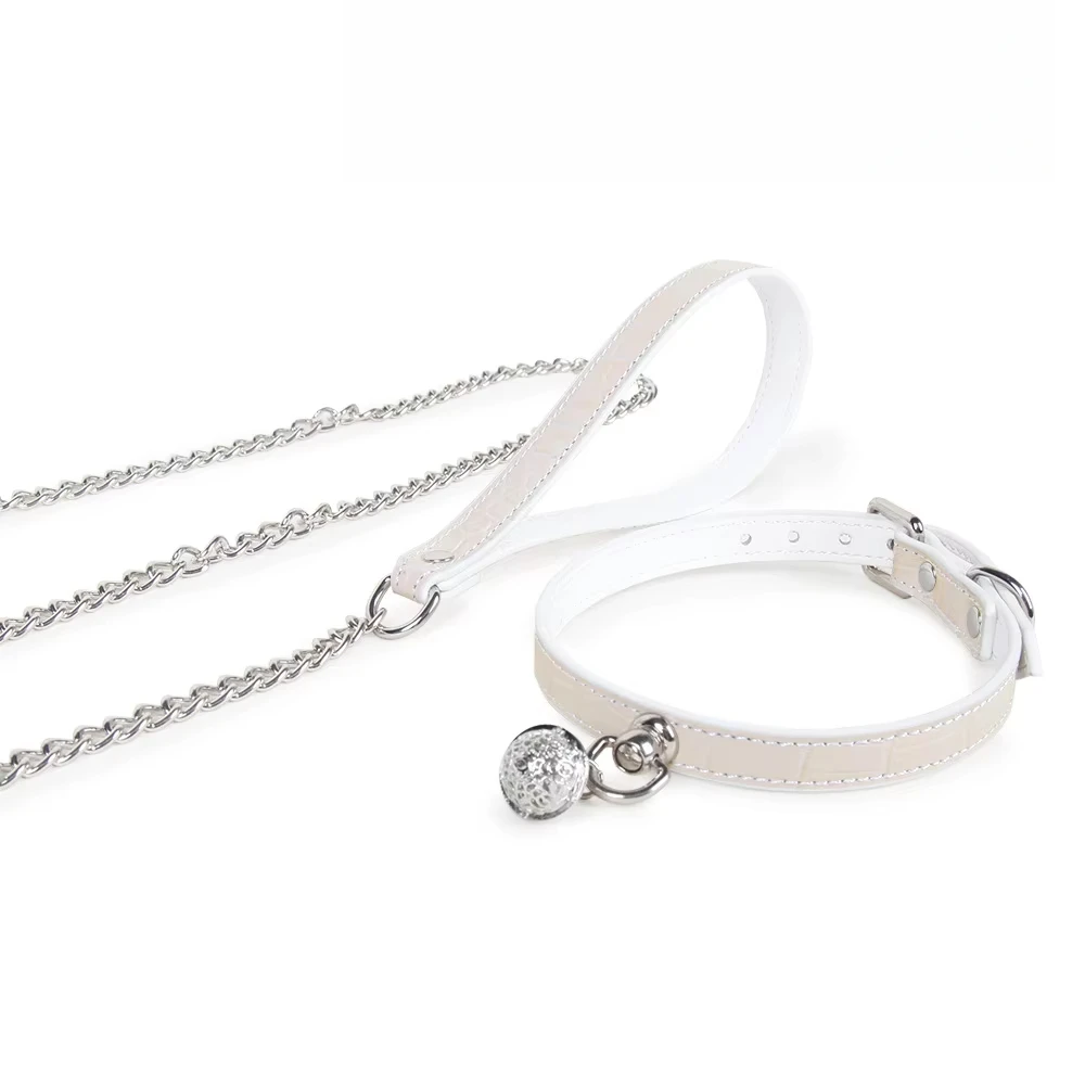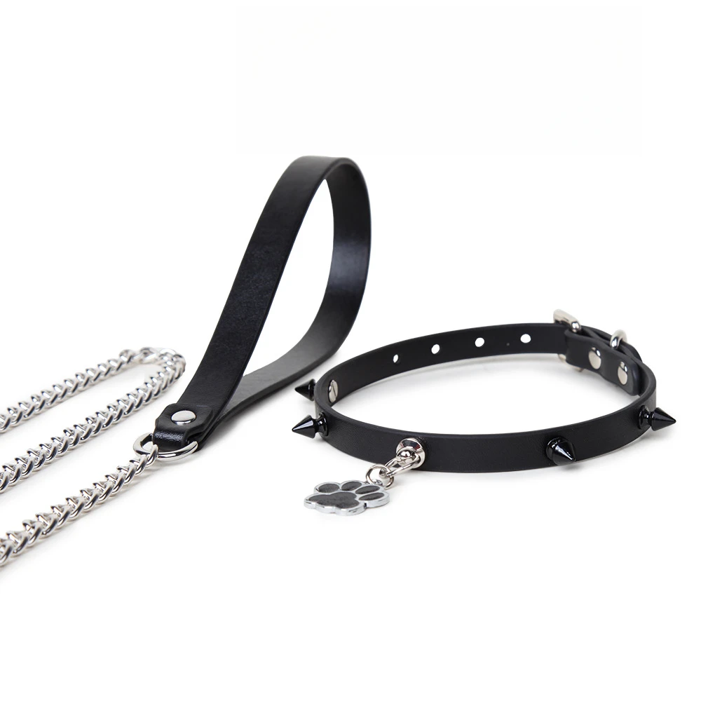 Colar BDSM com Corrente – Gargantilha de Couro para Jogos de Bondage e Roleplay