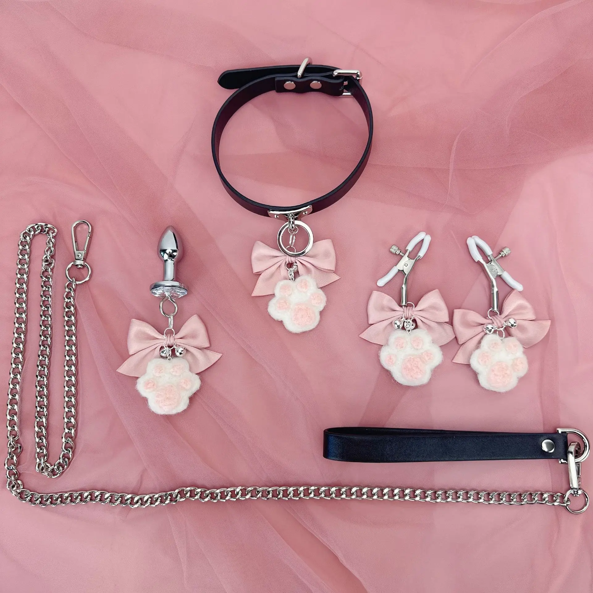 Explore o lado mais provocante do seu fetiche com este colar BDSM com plug anal e estimulação de mamilos, um conjunto completo que une submissão, prazer e estética kawaii com ousadia. O choker com laço e guizo cria um visual encantador, enquanto os grampos de mamilo com corrente conectada ampliam a sensibilidade e a entrega.