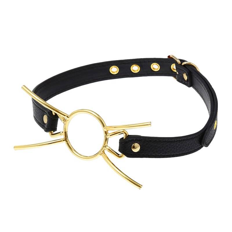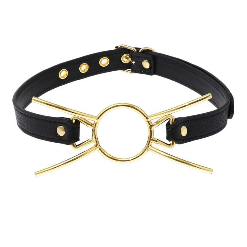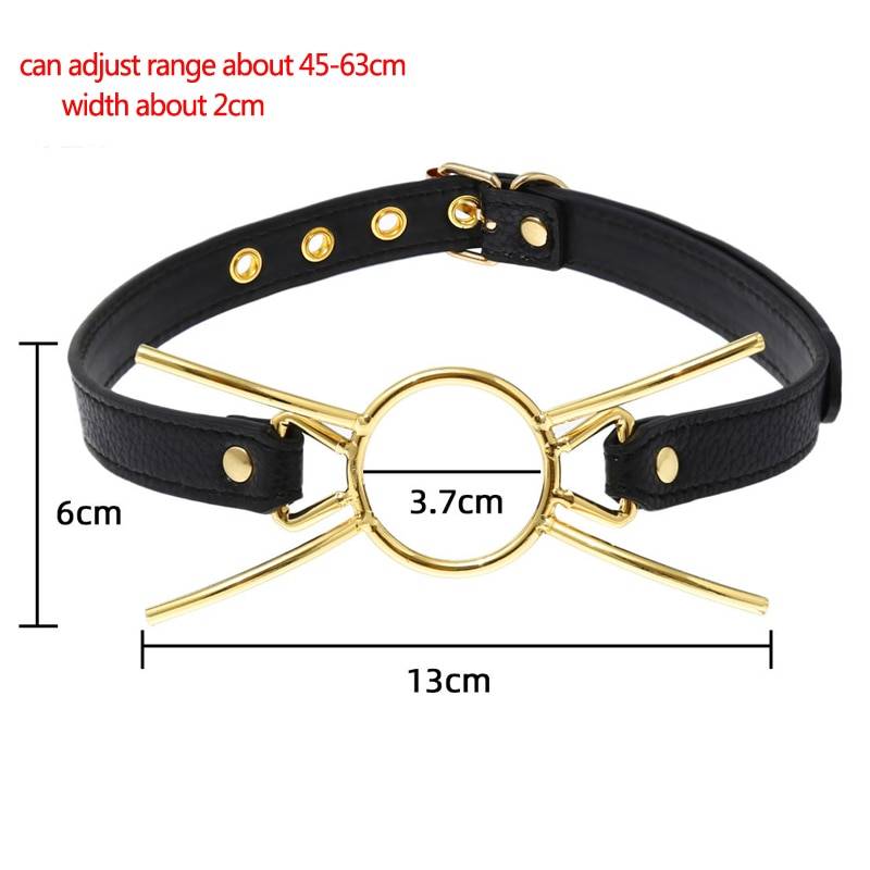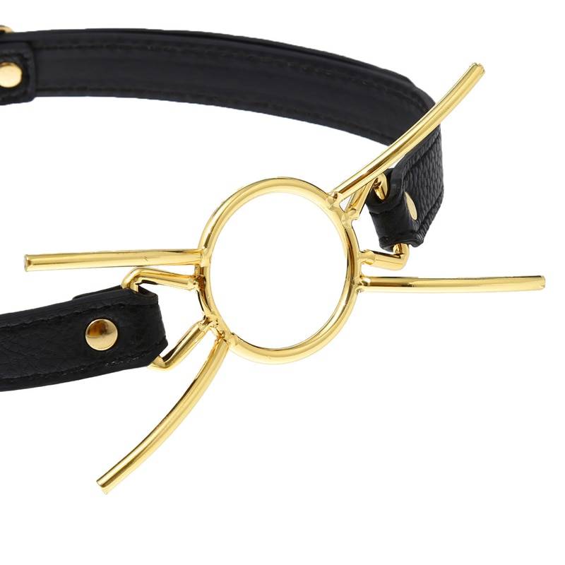 - 【item】: Colar de Luxo Mordaça Gag Anel Dourado