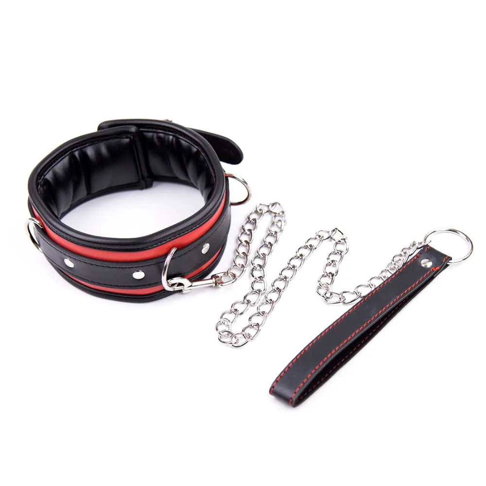 Coleira de Couro Acolchoada com Guia e Fivela para Cadeado