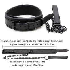 Duas coleiras de couro com opções de cores internas. Todas opções ligadas por correntes de cores escuras. Com regulagens precisas e firmes por fivelas que permitem circunferência total de até 53 cm. Apimente sua relação com estes dispositivos. Restringir os movimentos e aumentar sua liberdade é excitante. Seu par também vai gostar, sendo submisso ou não.