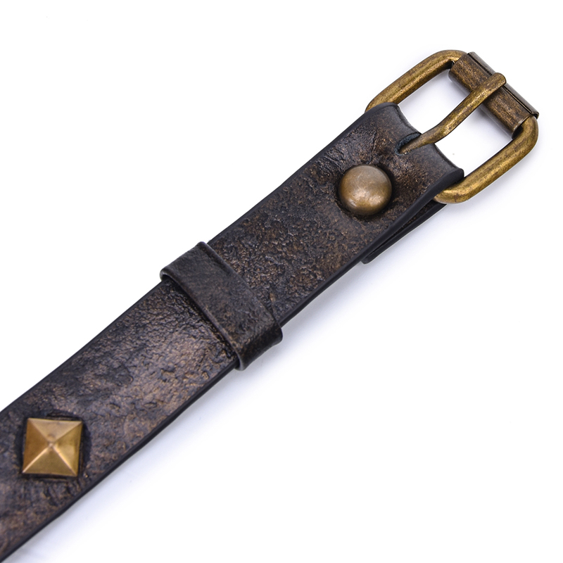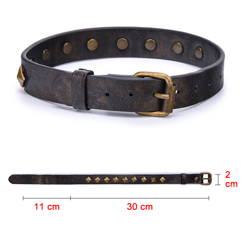 Coleira Vintage de Couro Genuíno Rebite Punk Collar