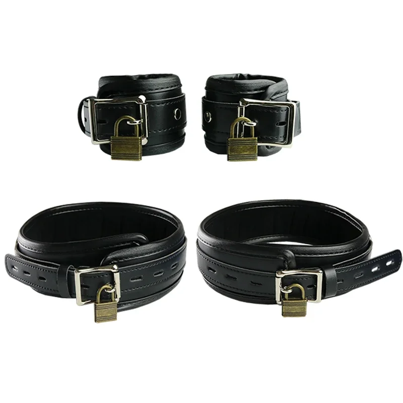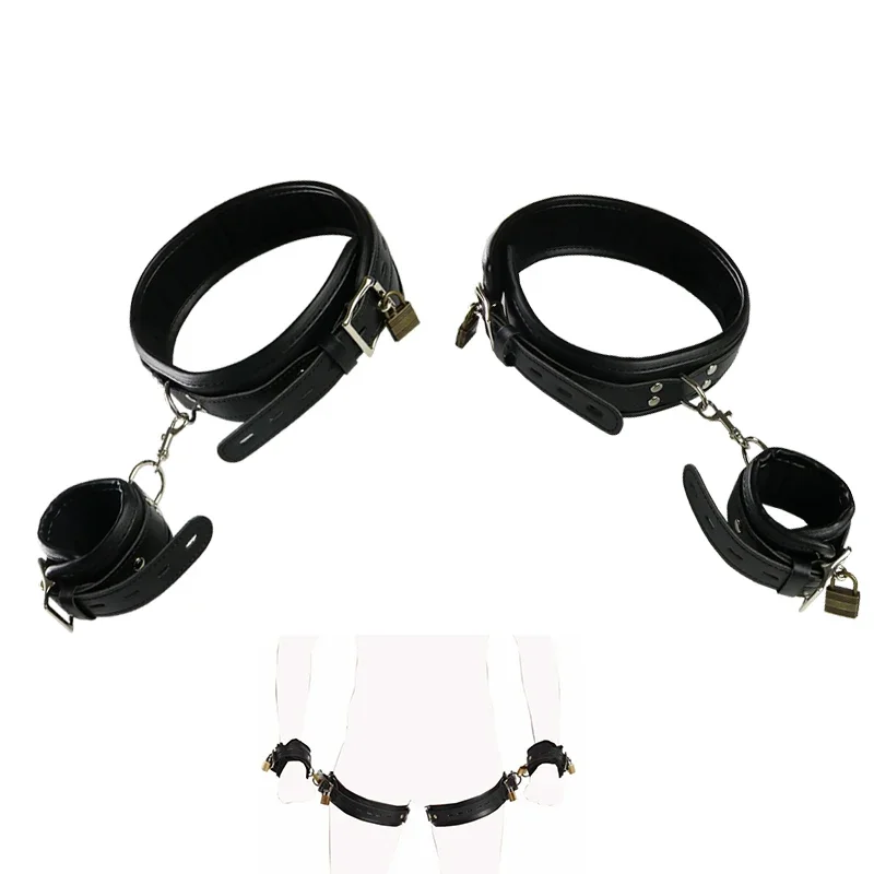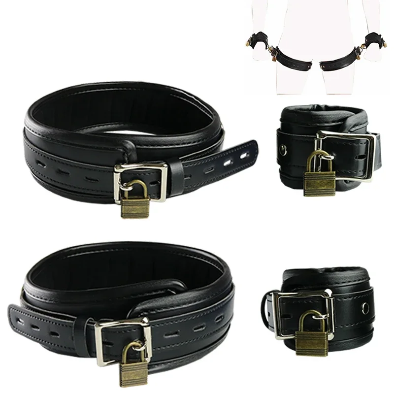 Conjunto de couro plutônio de alta qualidade para restrição de coxas e punhos com cadeados