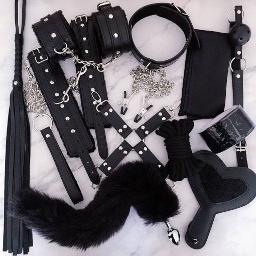Conjunto BDSM Bondage Kit 12 Peças para Jogos Adultos Completo