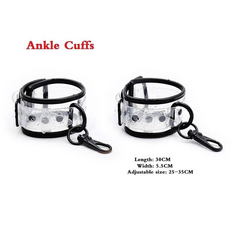 Conjunto BDSM Coleira Algemas e Tornozeleiras em PVC Transparente