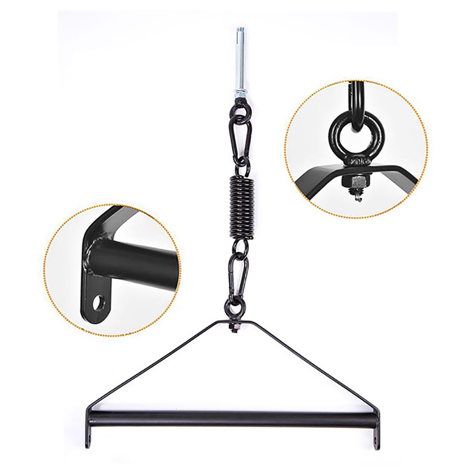 A barra possui articulação que pode girar livremente em relação à mola de fixação. Parafusos chumbadores do tipo parabolt são capazes de suportar muito peso. Dependendo do diâmetro, estas cargas variam entre 200 kg a 400 kg. Tudo vai depender da resistência do local aonde você fixar o parafuso.