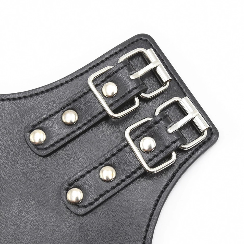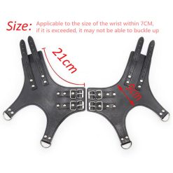 Restrinja os movimentos do seu par e delicie-se com a submissão e liberdade que você detêm. Ideal para fetiches BDSM. Tudo isto com o charme do couro negro e do brilho metálico.