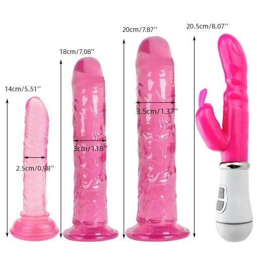 Com dildos de 3 tamanhos diferentes e um vibrador para o ponto G e o clitóris, a sua brincadeira estará praticamente completa.