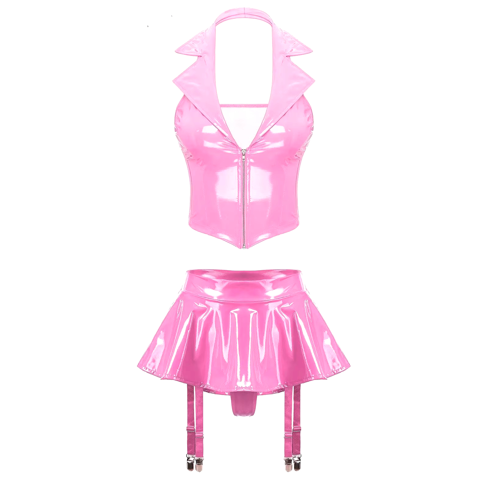 Desperte desejos intensos com o Conjunto de Lingerie em Couro Envernizado, uma peça ousada e cheia de atitude. O brilho marcante do material valoriza cada curva, enquanto o design ajustado realça o corpo com um toque provocante e sofisticado.
