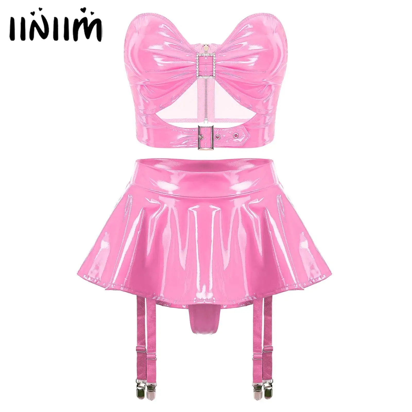 Desperte seu lado mais ousado com o Conjunto de Lingerie de Couro Patent, um modelo provocante que combina brilho, poder e sensualidade em uma só peça.