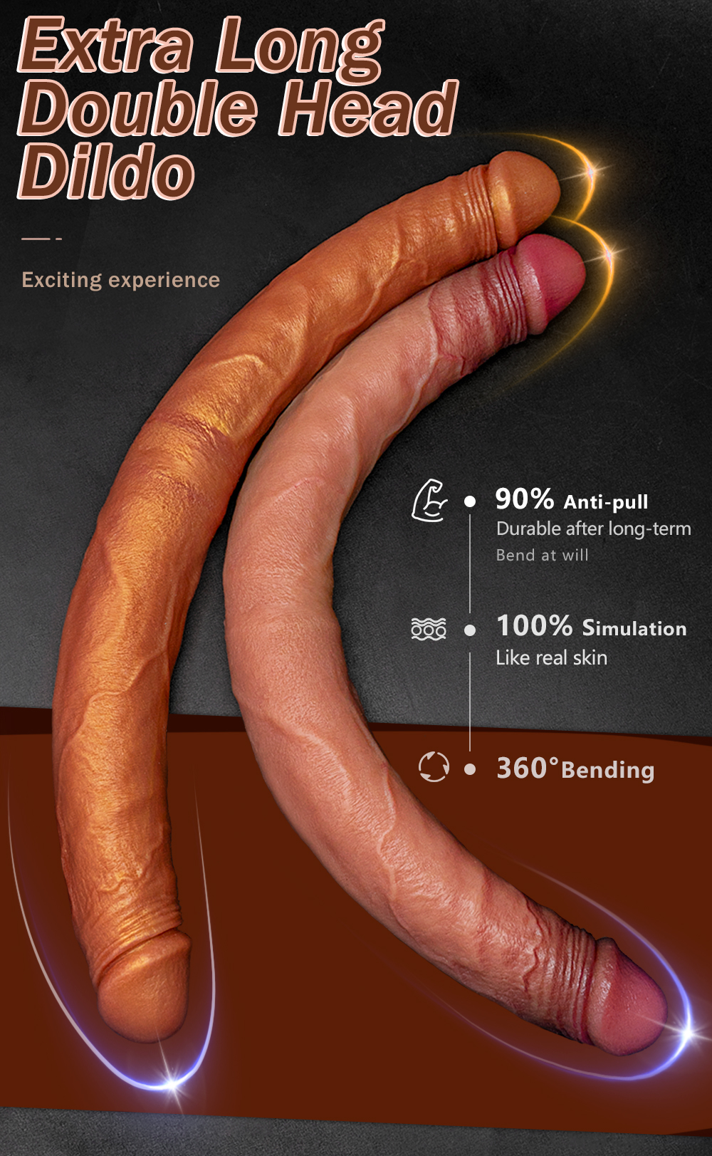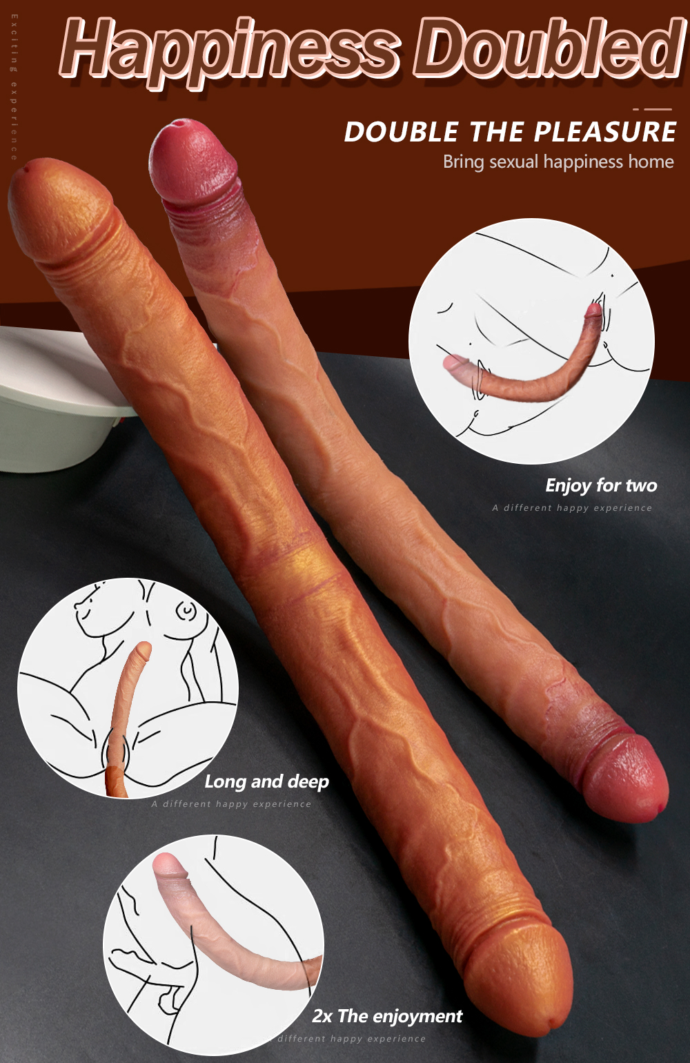 Flexível e anatômico, acompanha os movimentos do corpo e permite diversas posições e brincadeiras, seja para penetração simultânea, dupla ou entre parceiros.