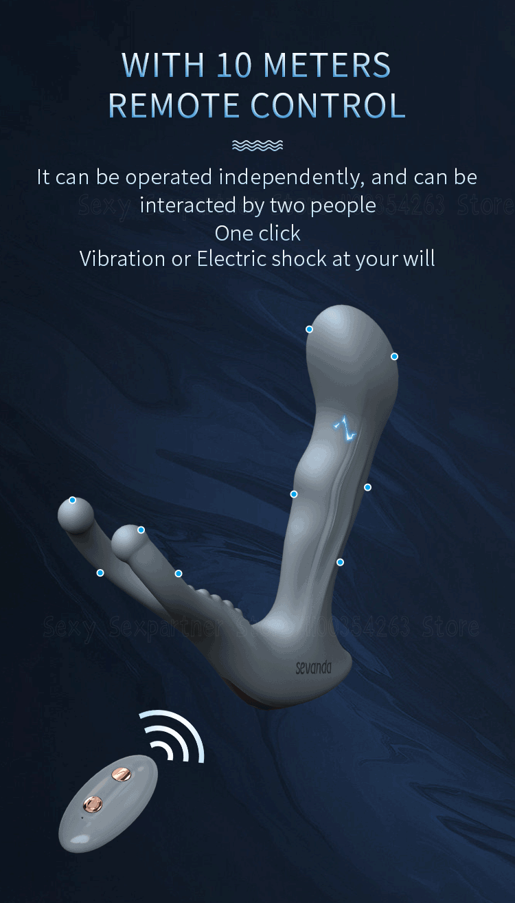 Um vibrador em formato de plugue profundo que toca o ponto G e a base dos testículos. Ótimo para estímulos sexuais individuais ou com o seu par. Imagine controlar tudo que seu parceiro sente a distância. Controle 10 modos de vibrações diferentes e 8 padrões de choques. O plugue ainda permite estímulos de choques elétricos. As descargas possuem baixa amperagem, mas podem alcançar tensões sensíveis.
