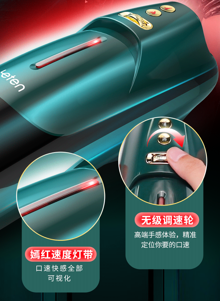 3. regulação de velocidade stepless, confortável para estourar a luz, luz de velocidade vermelha brilhante, com visualização completa de prazer de velocidade da boca, a roda de regulação de velocidade stepless localiza com precisão a velocidade da boca que você quer.