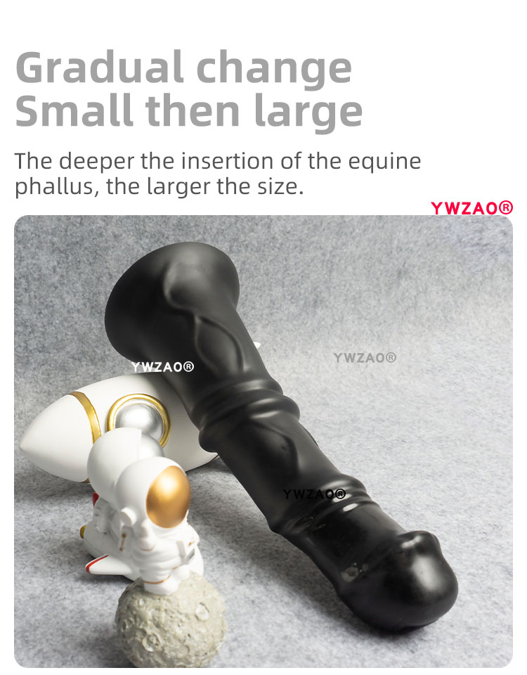 O vibrador do cavalo é de um cone afilado, com um design fino superior e inferior grosso, por isso parece maior quanto mais longe você for durante a penetração.