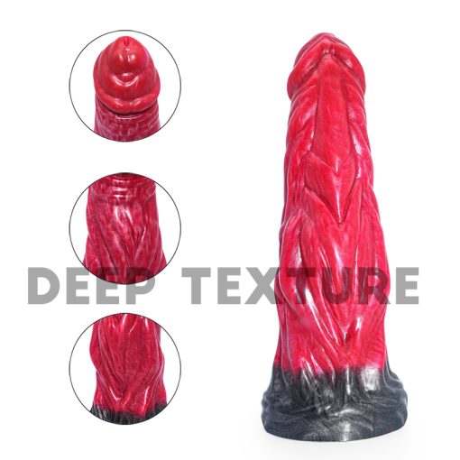 Dildo deep com textura muscular e cor vermelha viva. Tamanho médio confortável.