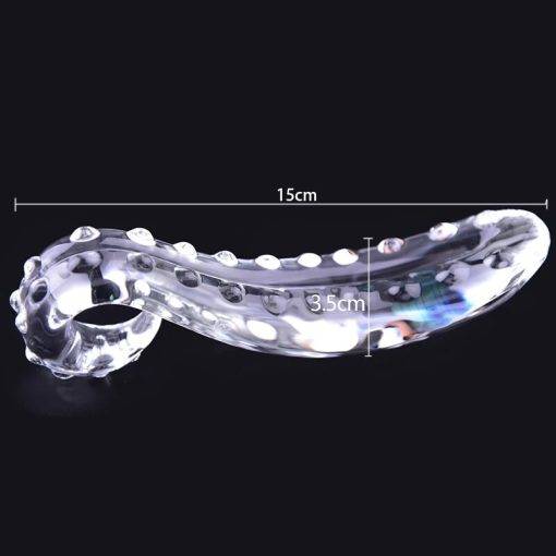 Modelo que possui texturas diferentes em cada ponta. Feitos com vidro comum, resistente a lubrificantes corporais. Formas de pênis liso e simples e um lado com textura espiral. As texturas diferentes também podem ser utilizadas por você, acompanhado ou não. Se estiver sozinha, masturbe-se e varie os lados para seu prazer particular. Se a opção com dupla ponta não é tão divertida, temos um dildo de vidro em forma de tentáculo, com várias pequenas bolinhas para satisfazer o que faltava.