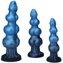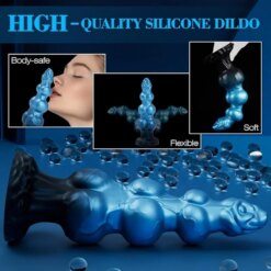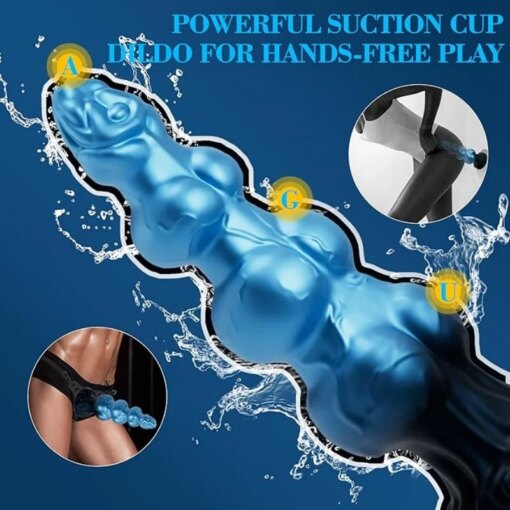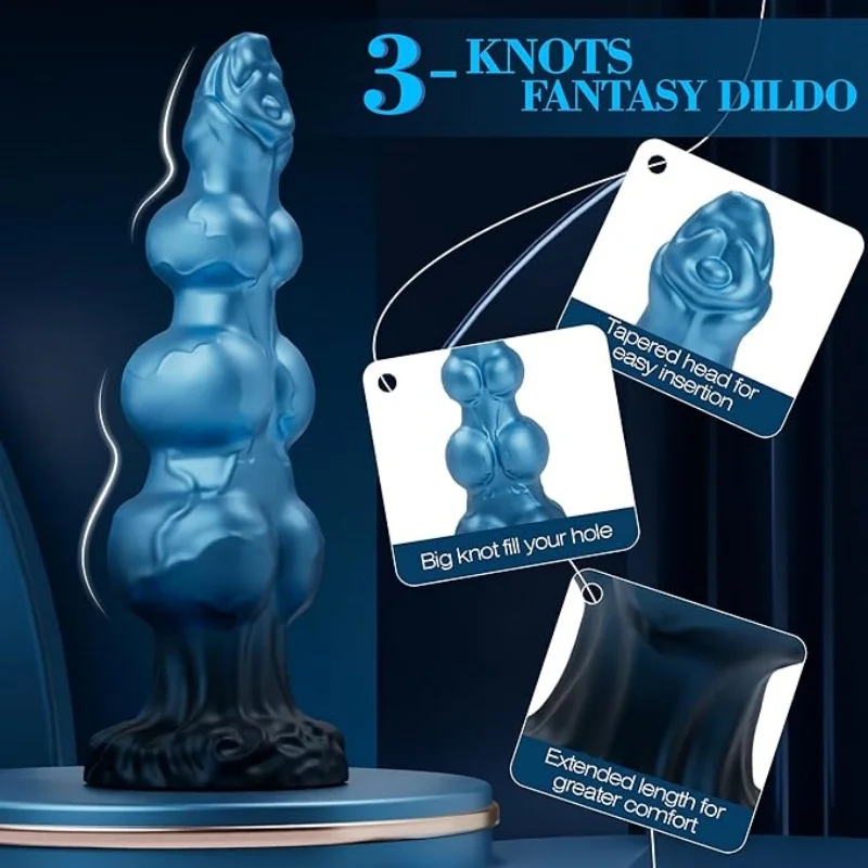Dildo Monster Cabaça Azul com 3 Nós – Silicone Líquido com Ventosa para Penetração Profunda